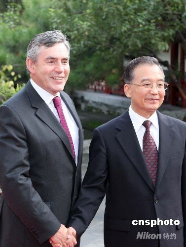 8月22日,中國國務(wù)院總理溫家寶在北京釣魚臺(tái)國賓館會(huì)見英國首相布朗。中新社發(fā) 廖文靜 攝