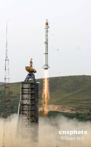 北京時間9月6日上午11時25分,中國“環(huán)境與災(zāi)害監(jiān)測預(yù)報小衛(wèi)星”(簡稱“環(huán)境減災(zāi)”)A、B衛(wèi)星以一箭雙星方式,在太原衛(wèi)星發(fā)射中心由“長征二號丙”運載火箭成功發(fā)射升空。中新社發(fā) 孫自法 攝
