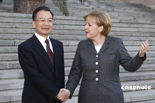 10月23日,中國國務(wù)院總理溫家寶在北京人民大會(huì)堂東門外廣場(chǎng)舉行儀式,歡迎德國總理默克爾。中新社發(fā) 盛佳鵬 攝