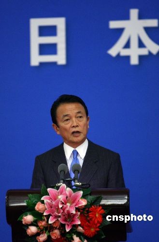 日本首相麻生太郎出席招待會(huì)并發(fā)表講話。