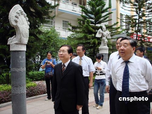 圖為中國法學(xué)會副會長李清林(右)、廣西壯族自治區(qū)副主席高雄(左)出席開班典禮并參觀中國—東盟法律文化廣場。