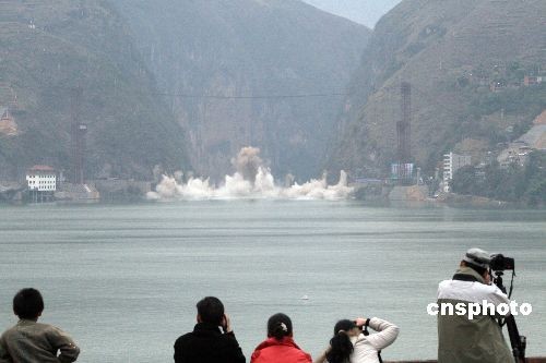 圖為龍門大橋爆破瞬間。中新社發(fā) 黃國萍 攝