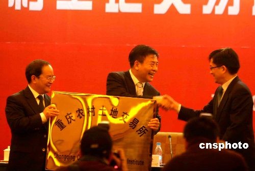 12月4日,醞釀已久的重慶農(nóng)村土地交易所正式掛牌成立。該交易所由重慶市政府出資成立,系非營(yíng)利性事業(yè)法人機(jī)構(gòu),實(shí)行現(xiàn)代企業(yè)管理模式,主要從事地票交易。所謂地票,指包括農(nóng)村宅基地及其附屬設(shè)施用地、鄉(xiāng)鎮(zhèn)企業(yè)用地、農(nóng)村公共設(shè)施和農(nóng)村公益事業(yè)用地等農(nóng)村集體建設(shè)用地,經(jīng)過(guò)復(fù)墾并經(jīng)土地管理部門(mén)嚴(yán)格驗(yàn)收后產(chǎn)生的指標(biāo)。中新社發(fā) 郭晉嘉 攝