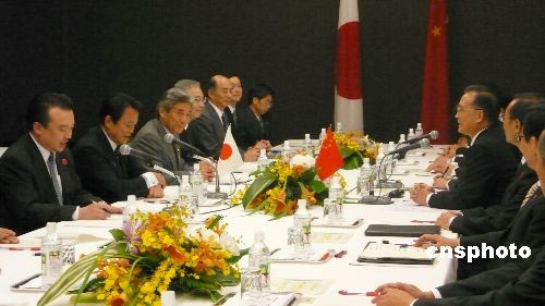 當?shù)貢r間12月13日下午2點許,中國總理溫家寶與日本首相麻生太郎在位于福岡的九州國立博物館舉行會見。中新社發(fā) 朱沿華 攝