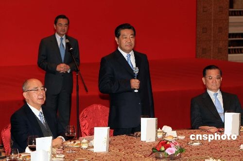 12月19日晚,中共中央政治局常委、全國政協(xié)主席賈慶林在上海舉行歡迎宴會(huì),宴請出席兩岸經(jīng)貿(mào)文化論壇的與會(huì)者。中國國民黨榮譽(yù)主席連戰(zhàn)、中國國民黨主席吳伯雄等數(shù)百嘉賓參加。中新社發(fā) 潘索菲 攝