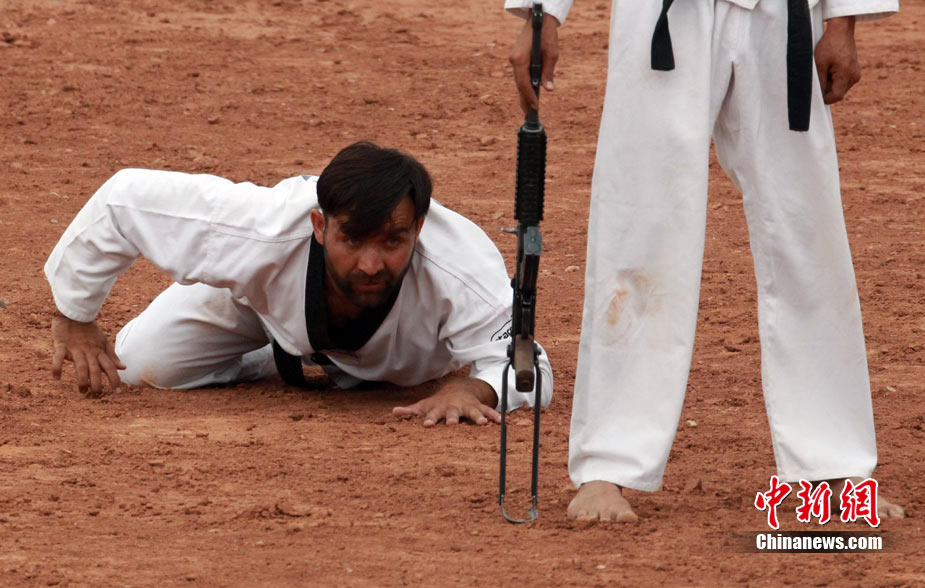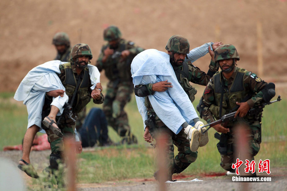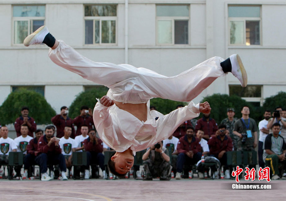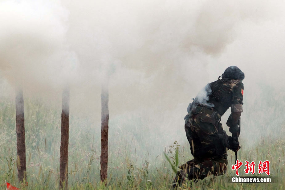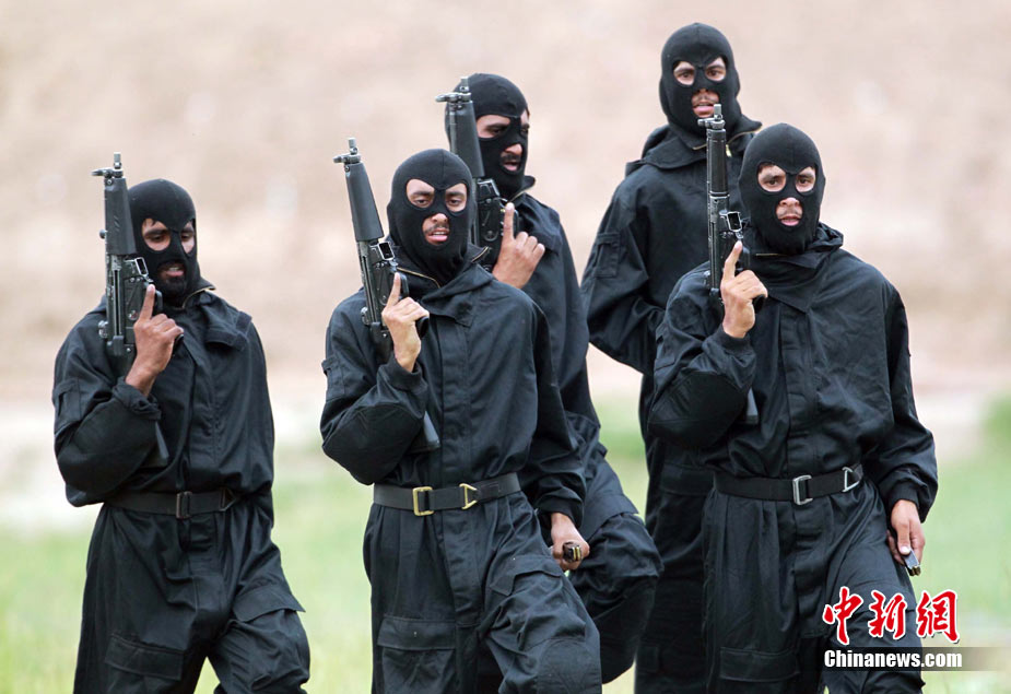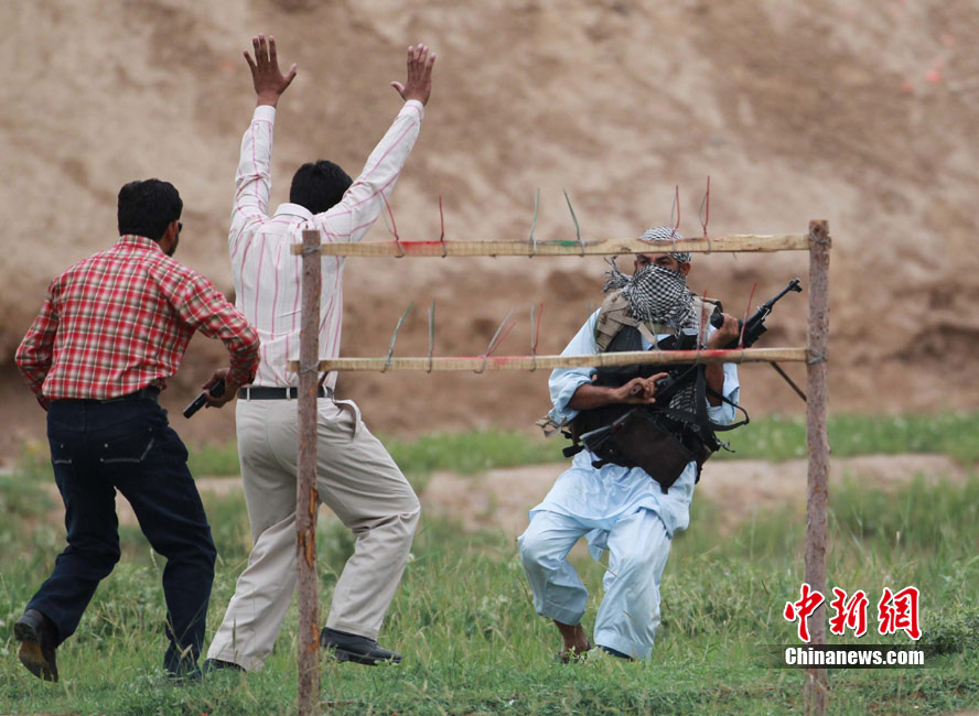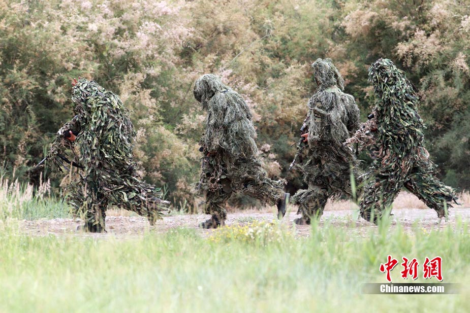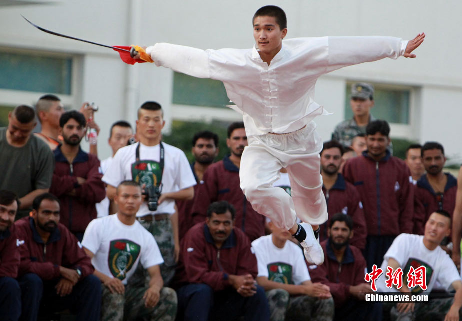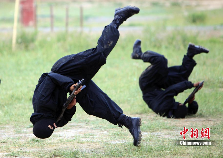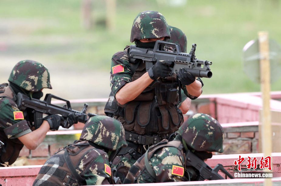 7月3日,代號(hào)“友誼—2010”的中國(guó)巴基斯坦反恐聯(lián)合訓(xùn)練在中國(guó)寧夏青銅峽地區(qū)展開(kāi),此次訓(xùn)練主要以邊境地區(qū)山地聯(lián)合反恐作戰(zhàn)為課題,分為展示交流、混編同訓(xùn)、綜合演練三個(gè)階段。圖為中國(guó)巴基斯坦兩軍特戰(zhàn)部隊(duì)交流展示反恐裝備。中新社發(fā) 杜洋 攝