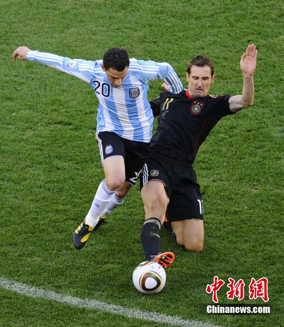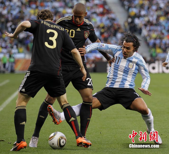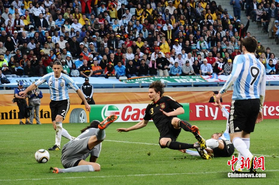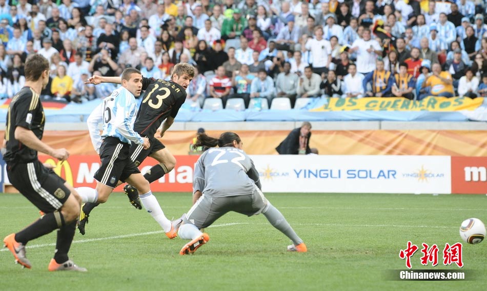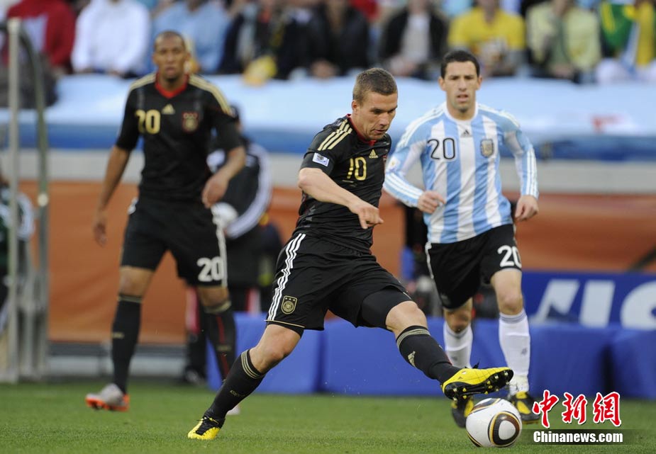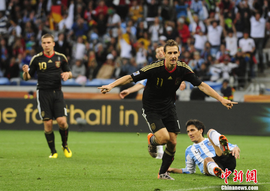 7月3日晚,南非世界杯1/4決賽第三場(chǎng)展開(kāi)了角逐,阿根廷隊(duì)在開(kāi)普敦綠點(diǎn)球場(chǎng)迎來(lái)了德國(guó)隊(duì)的挑戰(zhàn)。穆勒在上半場(chǎng)第3分鐘先拔頭籌,下半場(chǎng)克洛澤梅開(kāi)二度,弗雷德里希也打入一球,德國(guó)隊(duì)4-0狂勝阿根廷,昂首晉級(jí)半決賽。