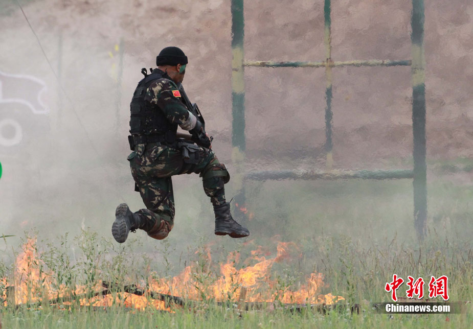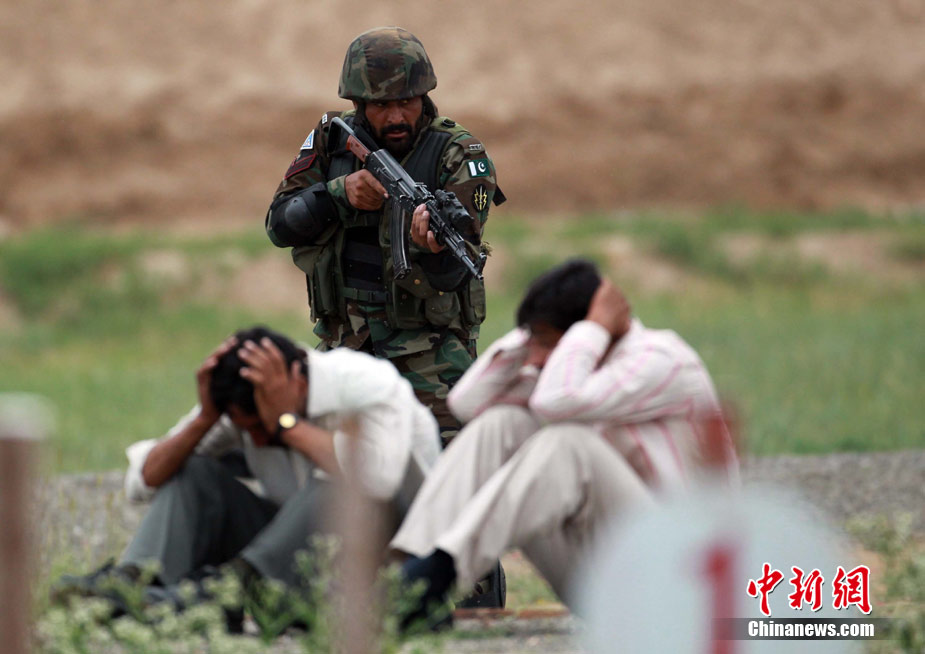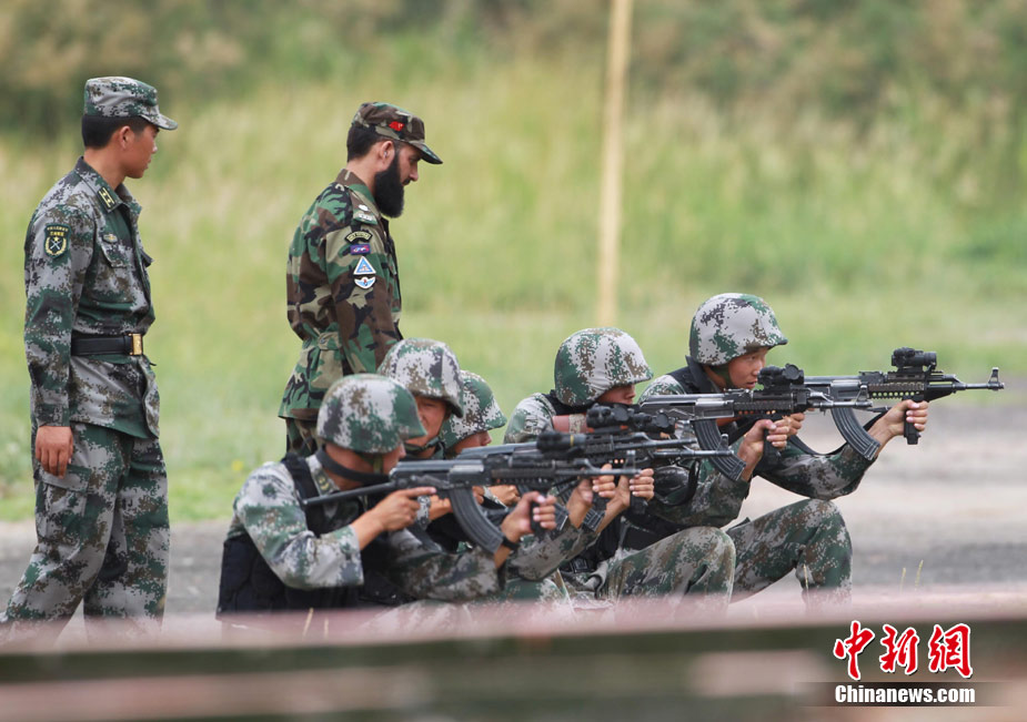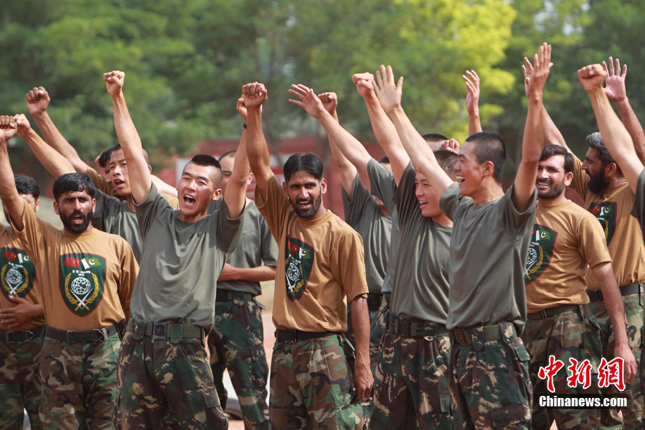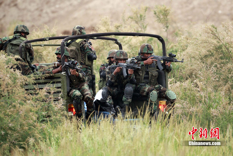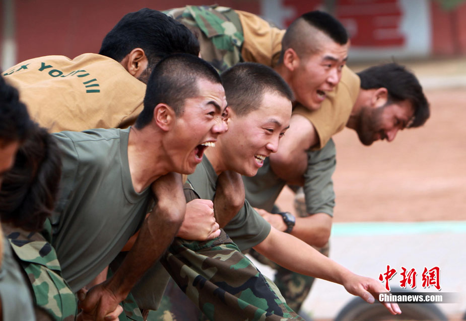 7月4日,參加“友誼—2010”中國巴基斯坦反恐聯(lián)合訓(xùn)練的兩軍士兵進行體能訓(xùn)練。此次訓(xùn)練在中國寧夏青銅峽地區(qū)展開,主要以邊境地區(qū)山地聯(lián)合反恐作戰(zhàn)為課題,分為展示交流、混編同訓(xùn)、綜合演練三個階段。這是兩國之間舉行的第三次反恐聯(lián)合訓(xùn)練。中新社發(fā) 杜洋 攝
