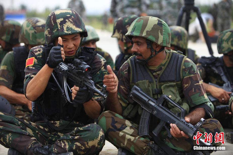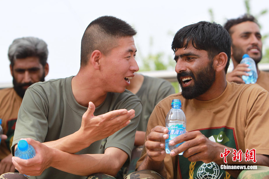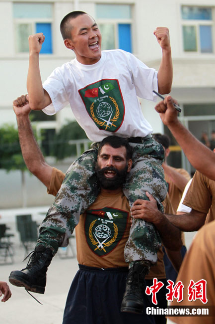 7月初,代號“友誼—2010”的中國巴基斯坦反恐聯(lián)合訓練在中國寧夏青銅峽地區(qū)展開,此次訓練主要以邊境地區(qū)山地聯(lián)合反恐作戰(zhàn)為課題。開訓以來,參訓官兵每天不論是訓練交流還是開展文體活動,都混編為A連和B連為單位組織實施,盡管語言溝通并不暢通,但中巴兩國士兵在手勢和眼神的幫助下,依然能夠協(xié)作訓練默契自然,完成動作標準規(guī)范。中新社發(fā) 杜洋 攝