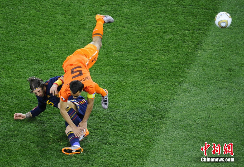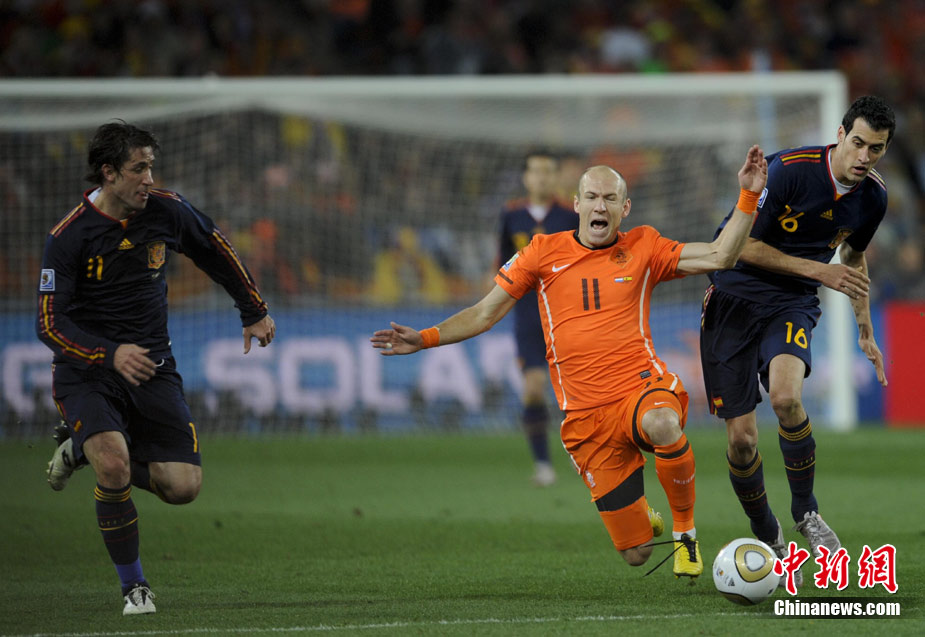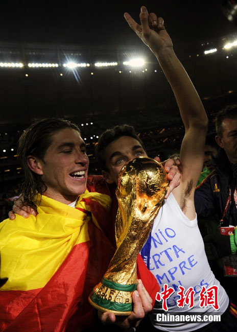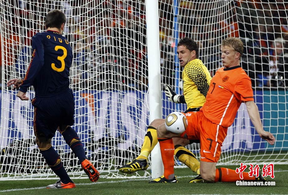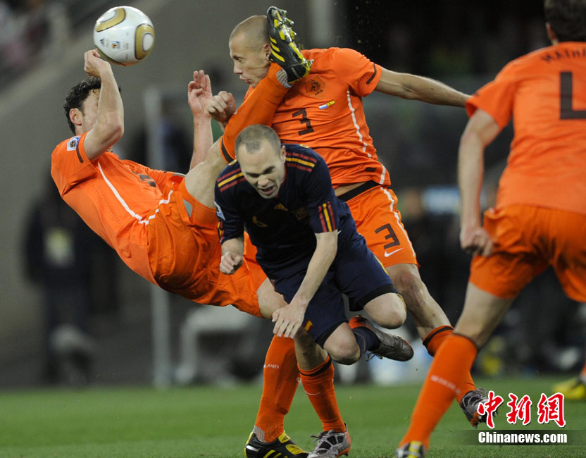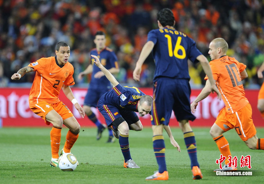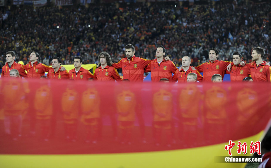 北京時(shí)間7月12日凌晨2:30,南非世界杯迎來了最終的決賽,在約翰內(nèi)斯堡的足球城球場(chǎng)由荷蘭隊(duì)對(duì)陣西班牙。最終雙方經(jīng)過120分鐘鏖戰(zhàn),伊涅斯塔在第116分鐘攻入全場(chǎng)唯一一粒進(jìn)球,絕殺十人應(yīng)戰(zhàn)的荷蘭隊(duì),史上首次奪得冠軍。