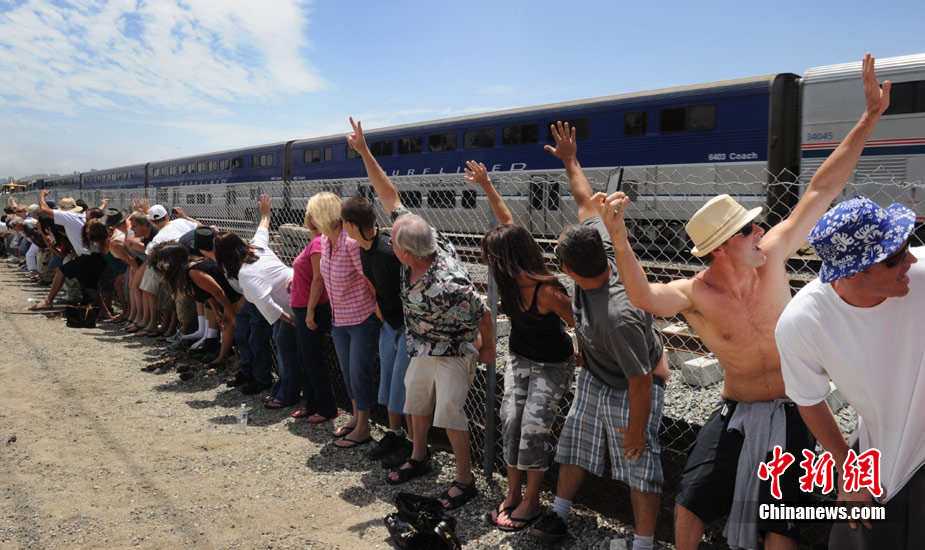美國加州萬人背對火車“曬屁股”