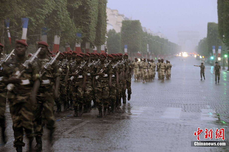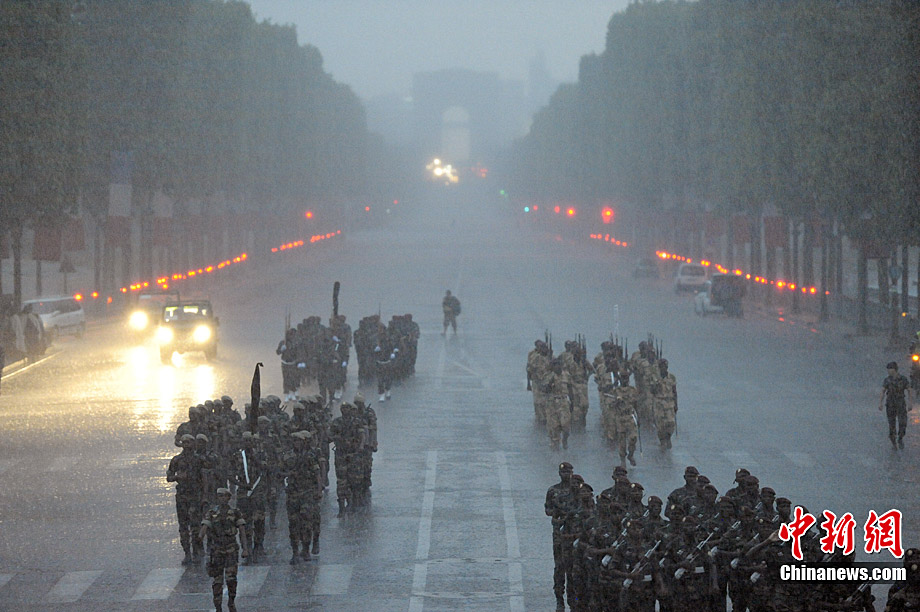 7月12日,法國(guó)巴黎的香榭舍大街上,來(lái)自13個(gè)非洲國(guó)家和法國(guó)軍隊(duì)的士兵冒雨進(jìn)行了國(guó)慶日閱兵式彩排。7月14日是法國(guó)國(guó)慶日。1789年的這一天,巴黎人民攻占了象征封建統(tǒng)治的巴士底獄,推翻了君主政權(quán)。1880年,7月14日被正式確立為法國(guó)的國(guó)慶日,法國(guó)人每年都要隆重紀(jì)念這個(gè)象征自由和革命的日子。