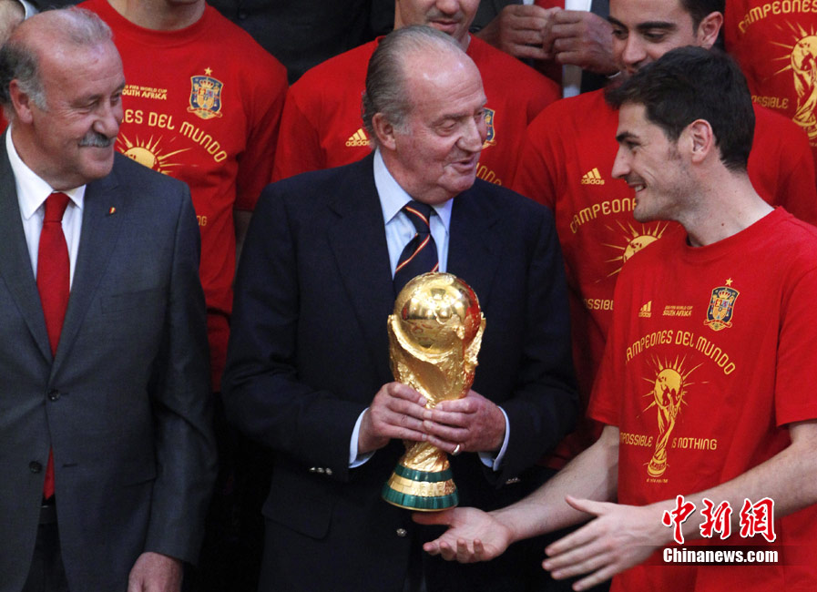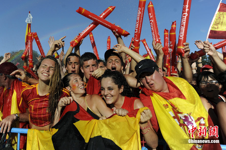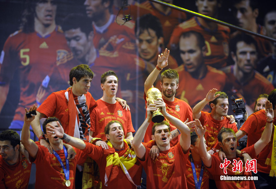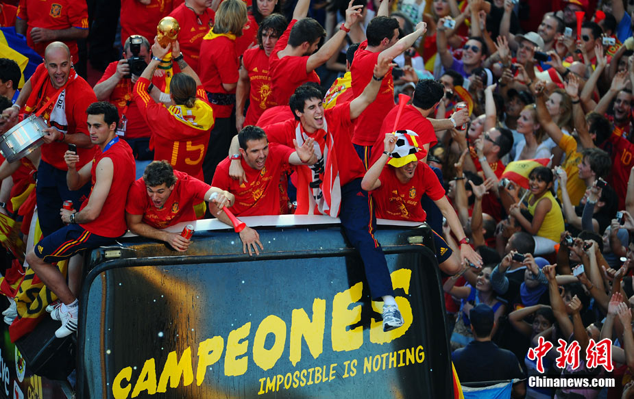7月12日,在西班牙馬德里,首次奪得世界杯冠軍的西班牙國家隊(duì)載譽(yù)歸國,并進(jìn)行奪冠后的游行。