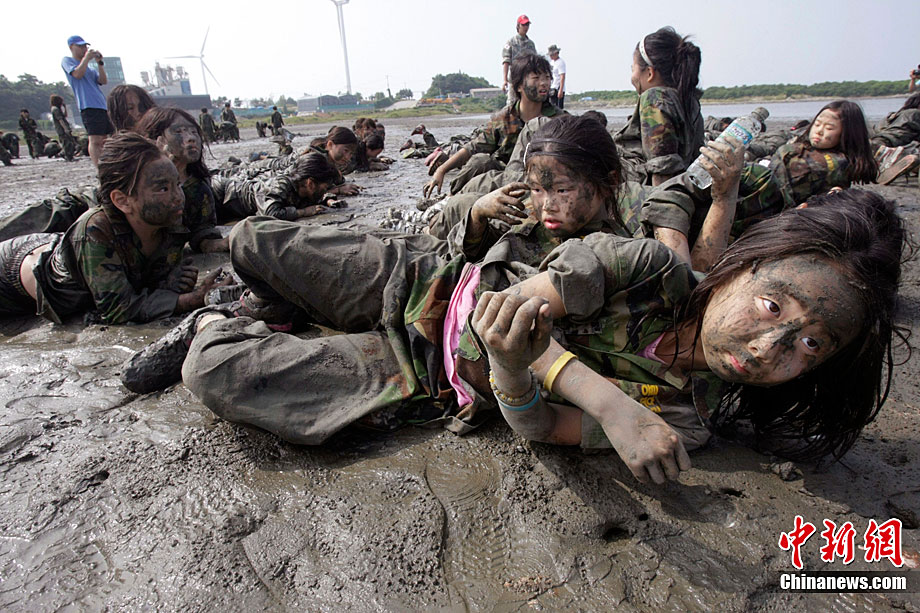 韓國小學(xué)生參加軍訓(xùn)夏令營