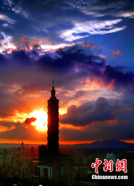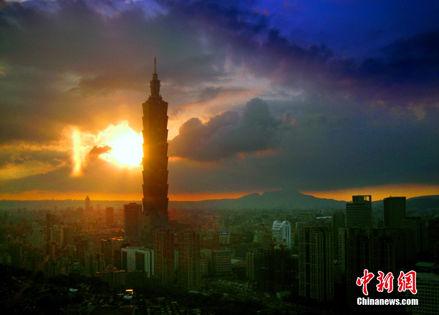7月15日傍晚,臺(tái)北市一陣電閃雷鳴過后,太空霞光四射,從象山俯瞰市區(qū),101摩天大樓聳入云霄,景觀如畫。美麗的臺(tái)北市地處盆地,氣候多變,夏季的城市景色也時(shí)常變幻莫測。中新社記者 宋吉河 攝