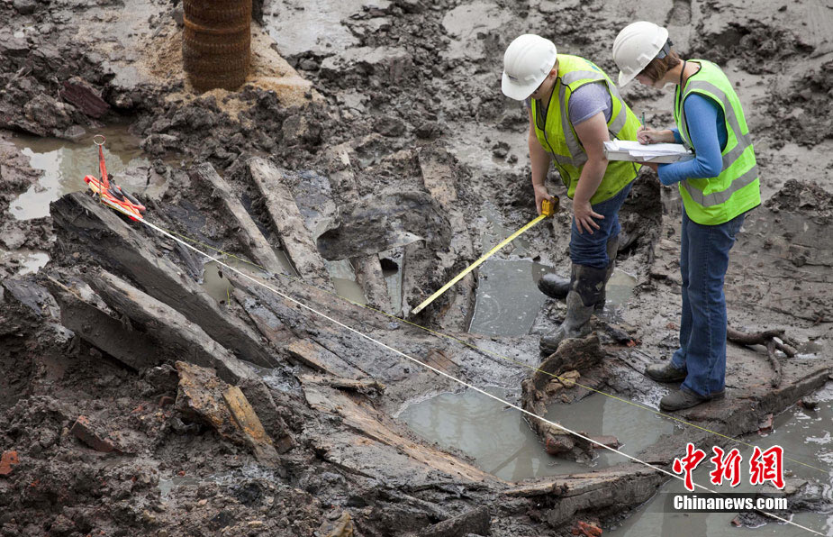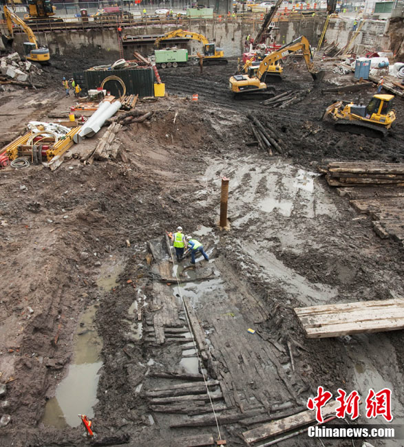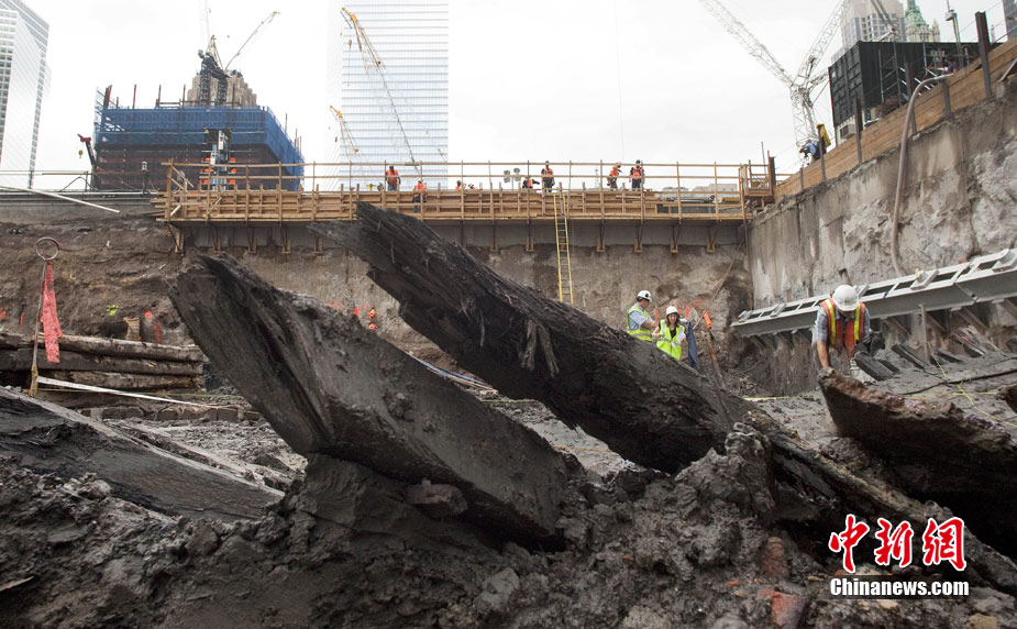 近日,美國(guó)紐約世貿(mào)中心遺址發(fā)現(xiàn)了一艘據(jù)信是18世紀(jì)的古船殘骸。報(bào)道稱,正在當(dāng)?shù)匦藿ㄐ率蕾Q(mào)大樓的建筑工人意外發(fā)現(xiàn)了這艘古船?脊艑W(xué)家表示,這艘長(zhǎng)約32英尺的古船可能是當(dāng)年用來(lái)運(yùn)料填充哈德遜河。