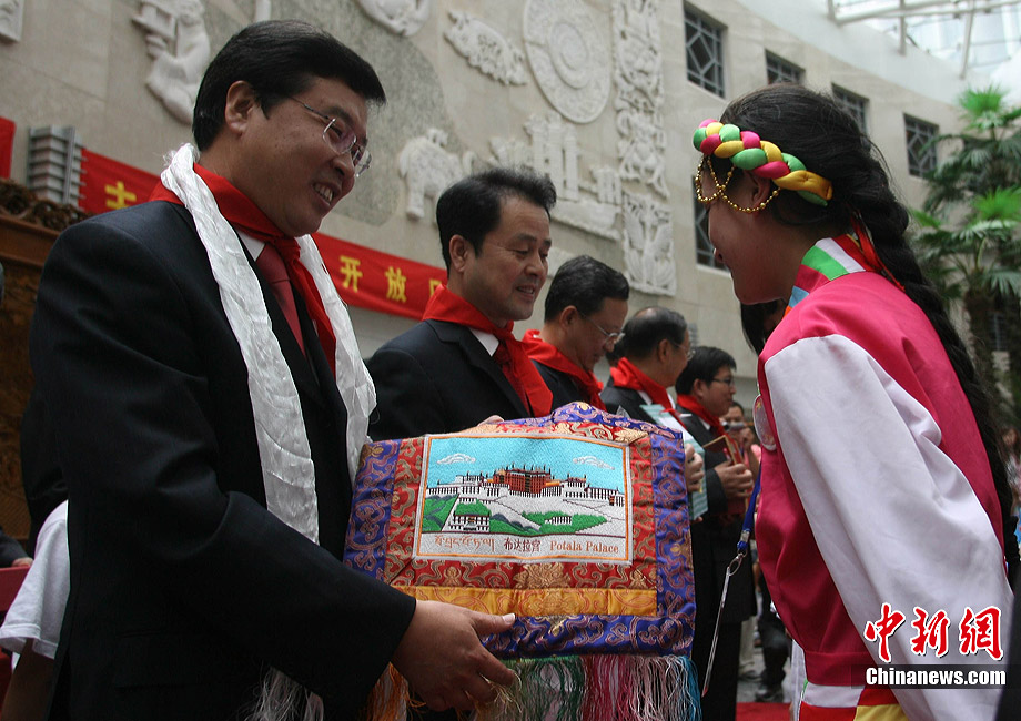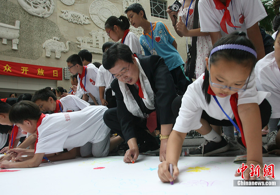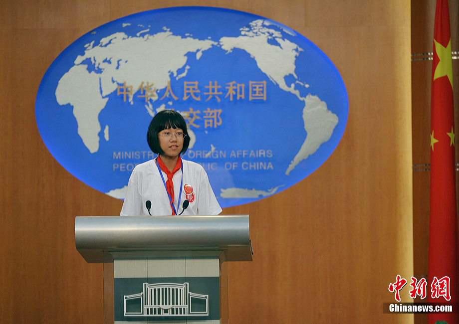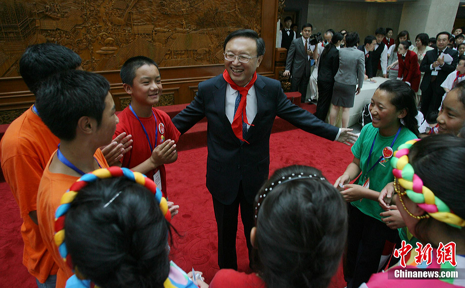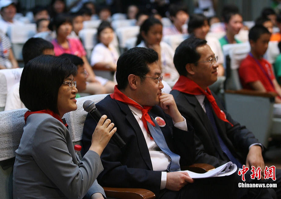 7月17日,在外交部橄欖廳,外交部長(zhǎng)楊潔篪勉勵(lì)玉樹震區(qū)小學(xué)生努力學(xué)習(xí)、重建家園。當(dāng)日,外交部舉辦第八次駐外使節(jié)任職宣誓儀式暨外交部“祖國(guó)在我心中”主題公眾開放日。來自北京、玉樹、黑龍江、重慶等地的小學(xué)生參加了此次活動(dòng)。中新社發(fā) 蘇丹 攝