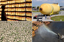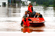 18日,重慶潼南柏梓鎮(zhèn)被淹的一個養(yǎng)豬場。據(jù)該場工作人員介紹,該豬場6000多頭豬均被洪水淹沒,僅17日便死了1000多頭豬。圖為18日晨,被淹的豬仍無法救出,成片的浮在水面上。曹多然 攝
