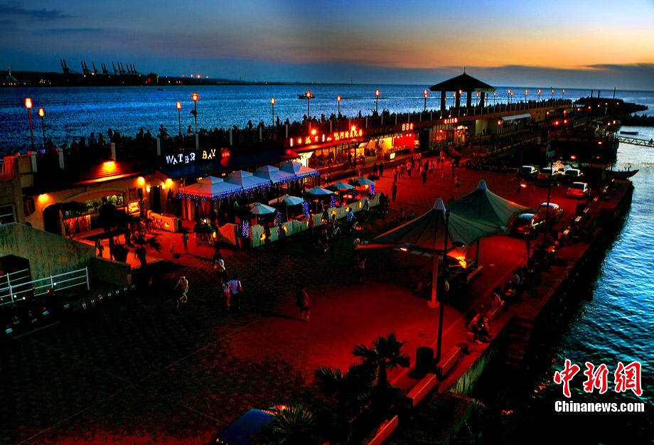 進入7月中下旬的臺灣淡水漁人碼頭,游人如織,黃昏時下,晚霞照碼頭,漁船燈火明,景色迷人。據(jù)悉,淡水漁人碼頭,之前為淡水第二漁港,情人橋完工后,完善成為觀光休閑碼頭。中新社記者 宋吉河 攝