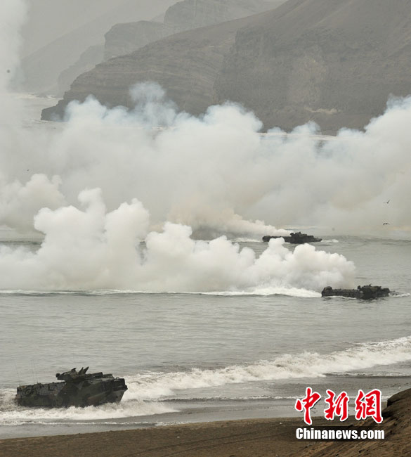7月19日,美國與秘魯、阿根廷、巴西、哥倫比亞、墨西哥和烏拉圭等10國海軍一起在秘魯首都利馬北部的安孔港展開一場代號為“SE/POA 10”的聯(lián)合兩棲登陸演習。