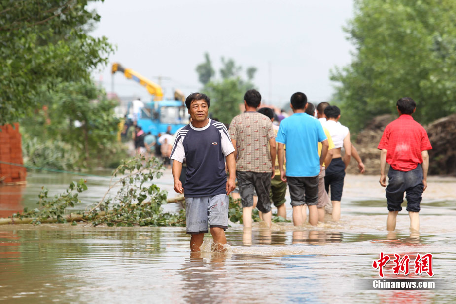 7月21日4時(shí)30分左右,遼寧省鐵嶺縣境內(nèi)勝利河阿吉段決口,決口寬度20米,流量600立方米/秒,淹沒(méi)耕地5000畝,當(dāng)?shù)伛v軍、公安干警、民兵預(yù)備役400多人投入抗洪搶險(xiǎn),轉(zhuǎn)移群眾3000多人。此前該地區(qū)連降暴雨,平均降雨362毫米。圖為阿吉村民金福祥看著自己家被淹沒(méi)非常傷心。中新社發(fā) 秦逸 攝