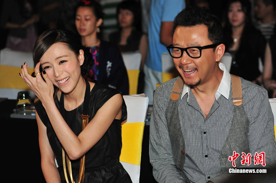 7月22日,國內(nèi)首部“一站式情感體驗愛情片”《萬有引力》在北京召開關機發(fā)布會。主演張靜初、郭濤、戴立忍、文章、白百合等到場。當郭濤被記者問到張靜初是否是自己喜歡的類型時,郭濤坦言,“張靜初是自己的夢中情人”。而文章,白百何則“不巧”撞衫,身著幾乎一樣的黑白格子襯衫出席,這對中戲老同學在現(xiàn)場“打情罵俏”大搶風頭。 中新社記者 李學仕 攝