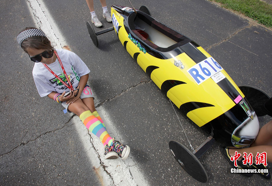 當(dāng)?shù)貢r(shí)間7月21日,美國(guó)俄亥俄州舉行了第73屆全美“肥皂盒”小車大賽。來(lái)自美國(guó)各地以及加拿大、日本、德國(guó)和新西蘭的約500名車手?jǐn)y帶自己的愛(ài)車參賽!胺试砗小毙≤嚊](méi)有任何動(dòng)力裝置,其主要設(shè)計(jì)目標(biāo)是減少空氣阻力和摩擦力,以便讓小車的速度達(dá)到最高。