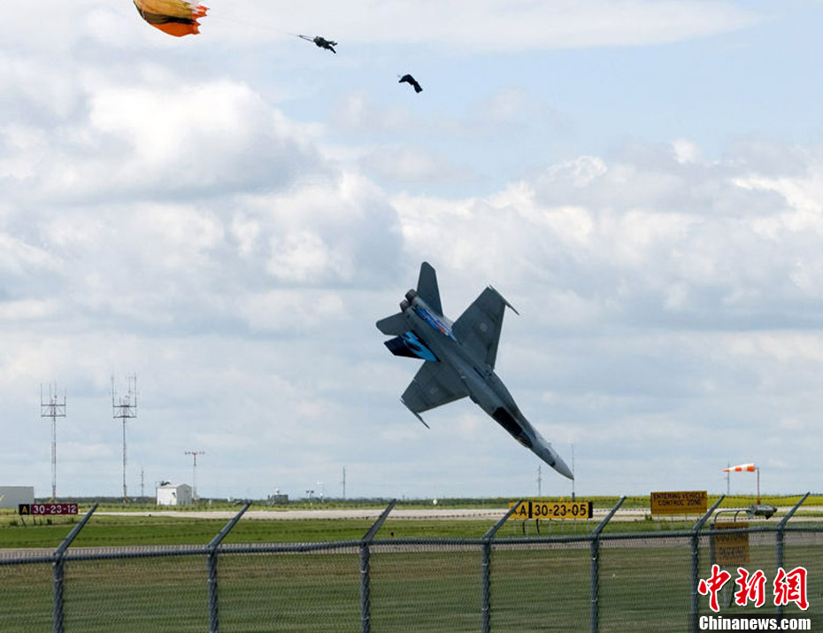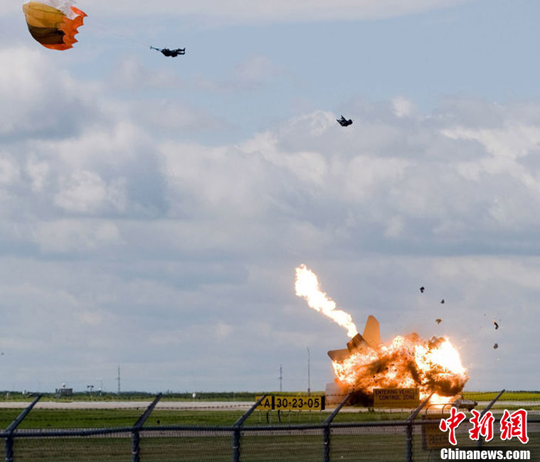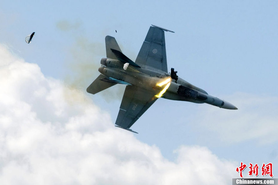 7月23日,在加拿大阿爾伯塔萊斯布里奇機(jī)場(chǎng),F(xiàn)/A-18C戰(zhàn)斗機(jī)飛行員彈射逃生。飛行員已被送到當(dāng)?shù)匾患裔t(yī)院,是否受傷尚不清楚。事故原因正在調(diào)查中。圖為戰(zhàn)機(jī)墜地爆炸瞬間。