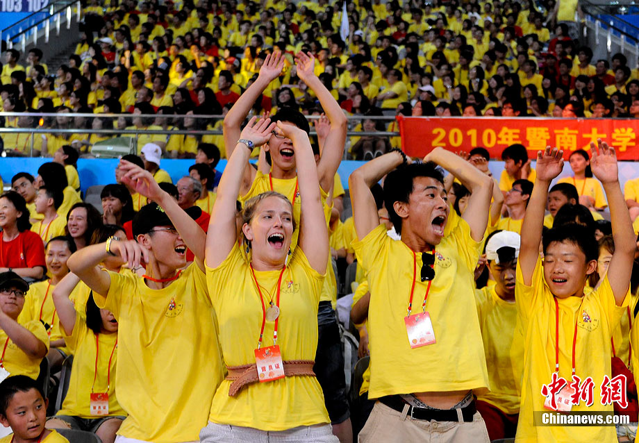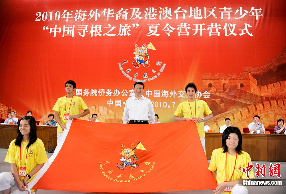 7月25日,海外華裔及港澳臺地區(qū)青少年“中國尋根之旅”夏令營開營儀式在北京人民大會堂舉行,中共中央政治局常委、國家副主席習近平向參加夏令營的青少年授旗。此次夏令營為歷屆規(guī)格最高、規(guī)模最大的一次,共有來自世界51個國家和港澳臺地區(qū)的6000余名華裔青少年參加。該夏令營由國務(wù)院僑務(wù)辦公室和中國海外交流協(xié)會舉辦。中新社發(fā) 廖攀 攝