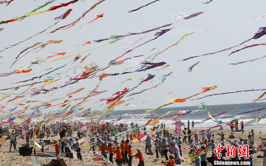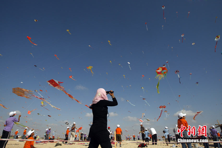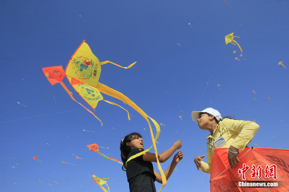 7月29日,7500名巴勒斯坦兒童在加沙地帶北部的海灘上同時放飛自制風箏,刷新了他們?nèi)ツ暝谶@里創(chuàng)造的吉尼斯世界紀錄。