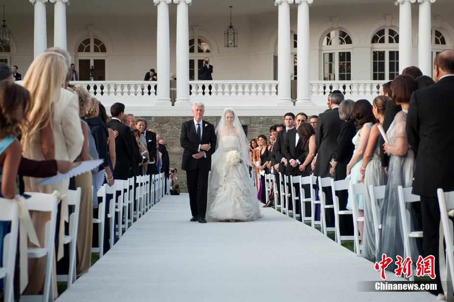 7月31日,紐約萊茵貝克,美國前總統(tǒng)克林頓的女兒切爾西的婚禮當日在阿托莊園舉行。 傳媒猜測這次世紀大婚要300萬至500萬美元埋單。
