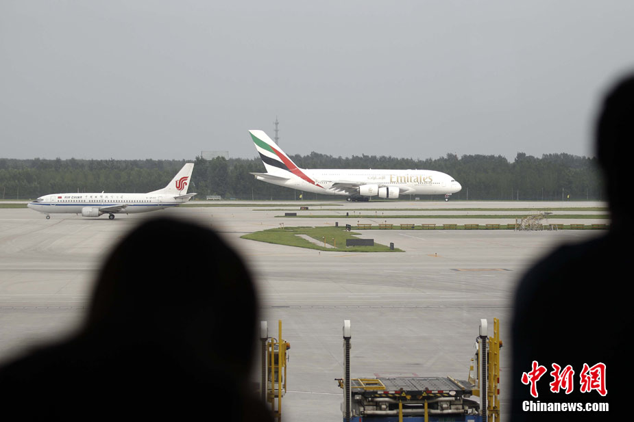 8月1日,阿聯(lián)酋航空公司A380飛機(jī)降落在北京首都機(jī)場,這是世界上最大客機(jī)A380執(zhí)行的首條定期飛北京的航線。空客A380是世界上最環(huán)保的商業(yè)客機(jī),它的合成材料、輕身原料和加固構(gòu)架使其每座位燃油消耗比其他同類型飛機(jī)低20%以上。