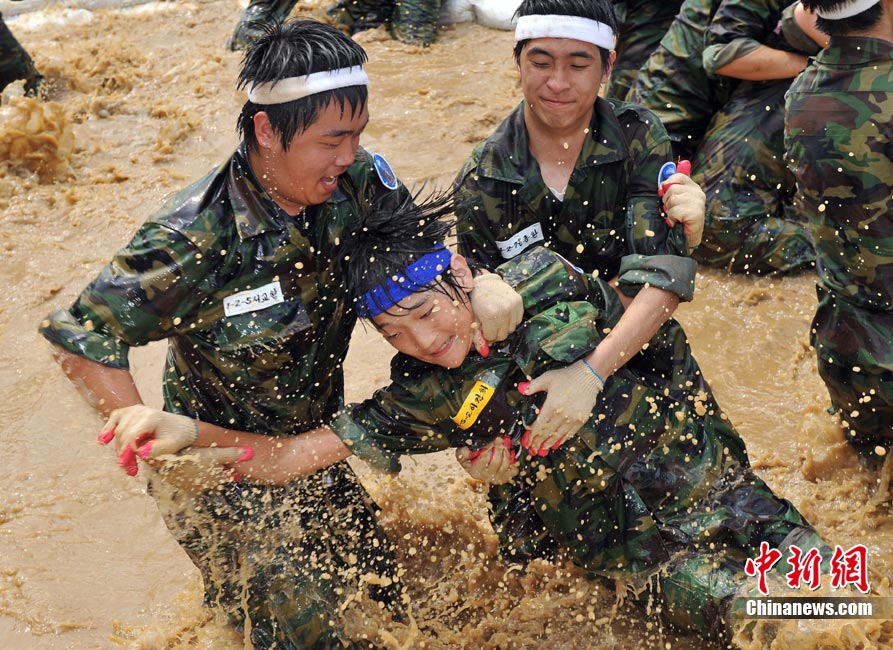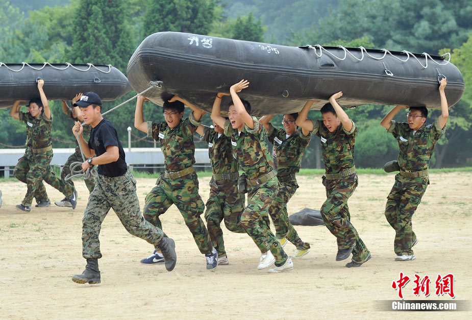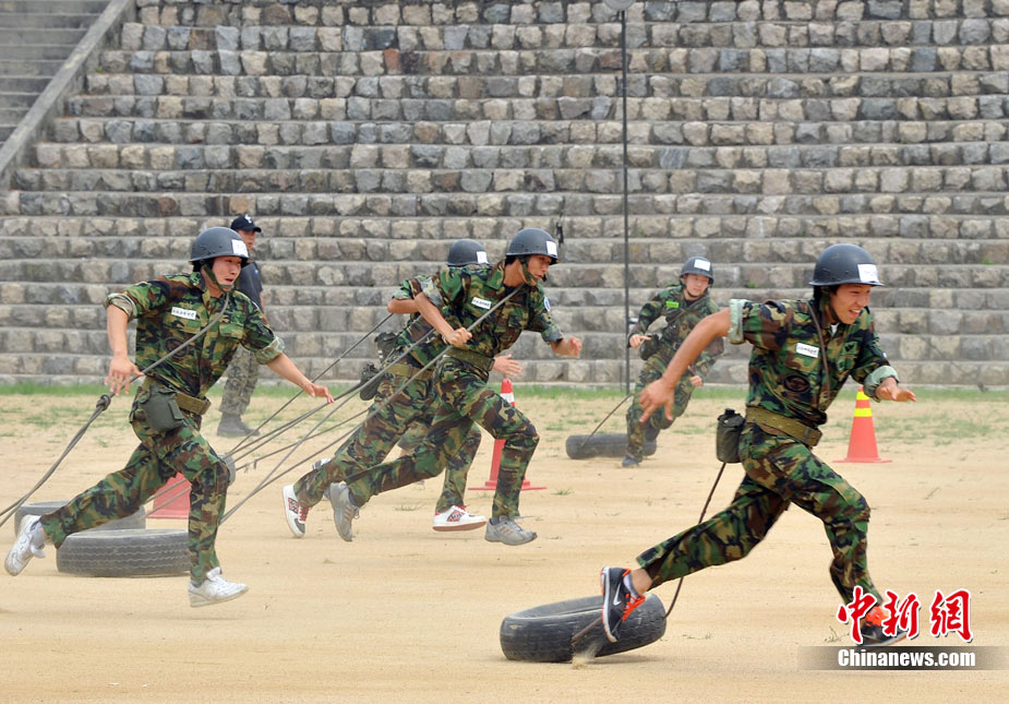 韓國學(xué)生軍事基地訓(xùn)練 磨練意志體魄