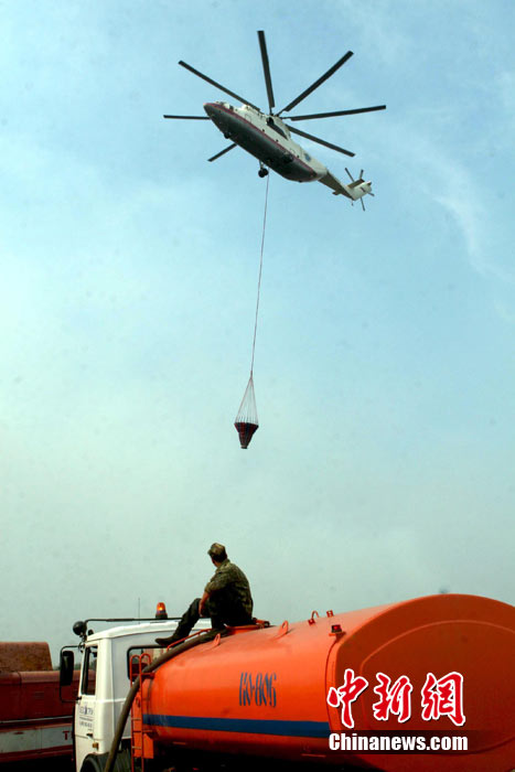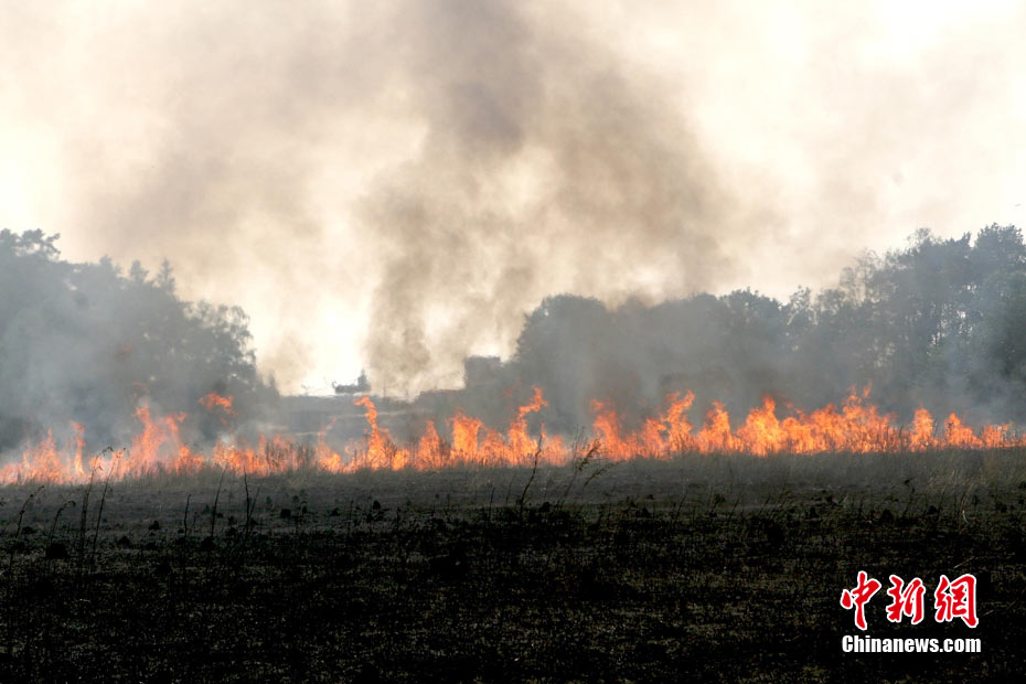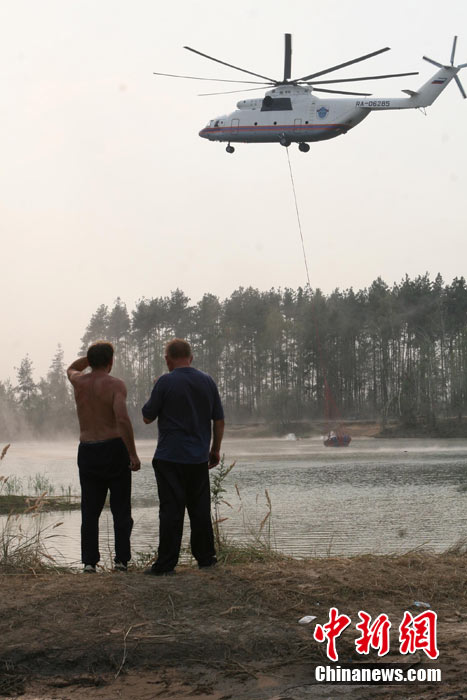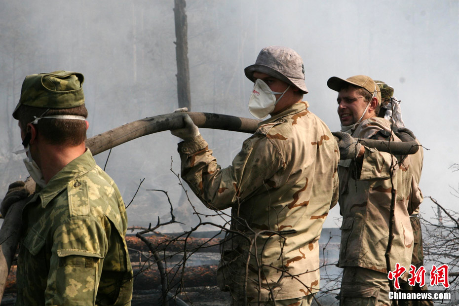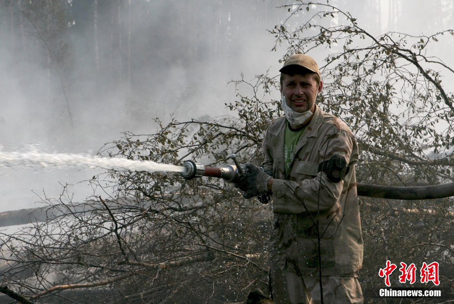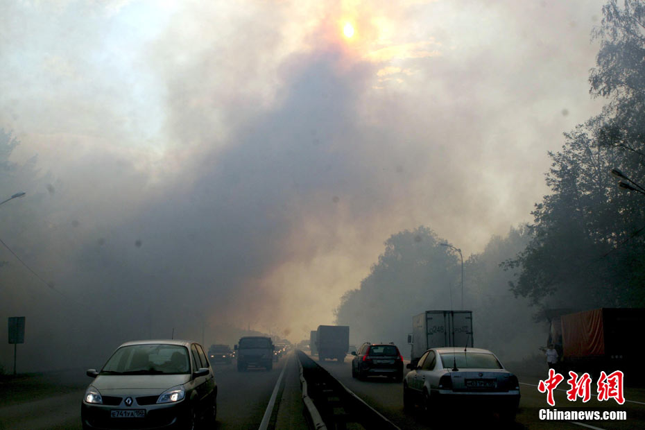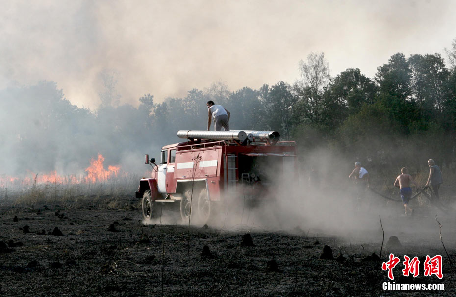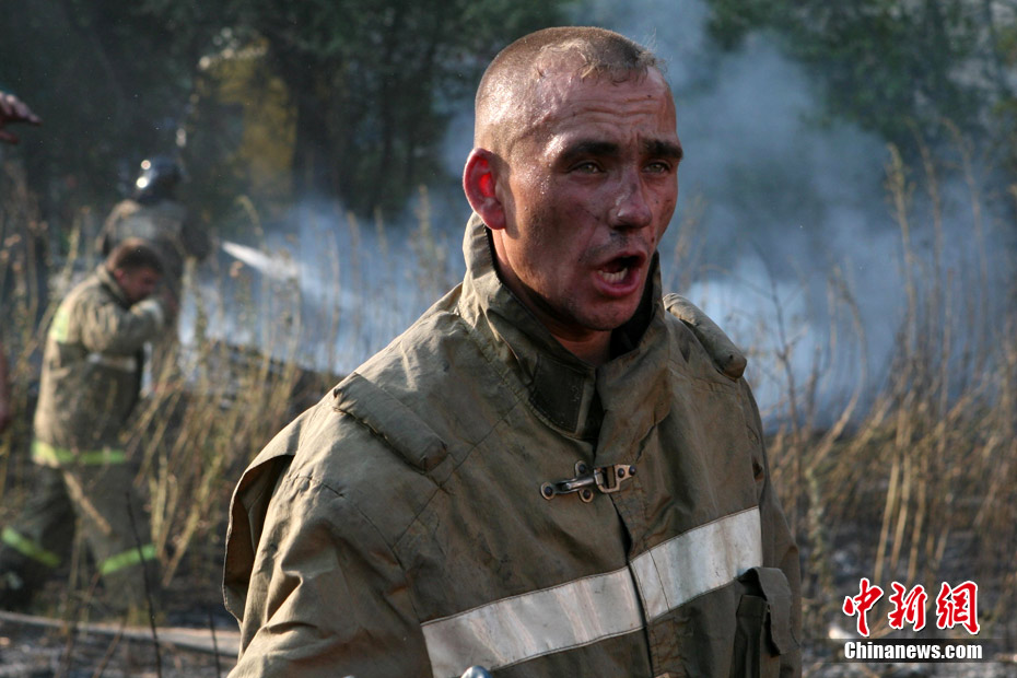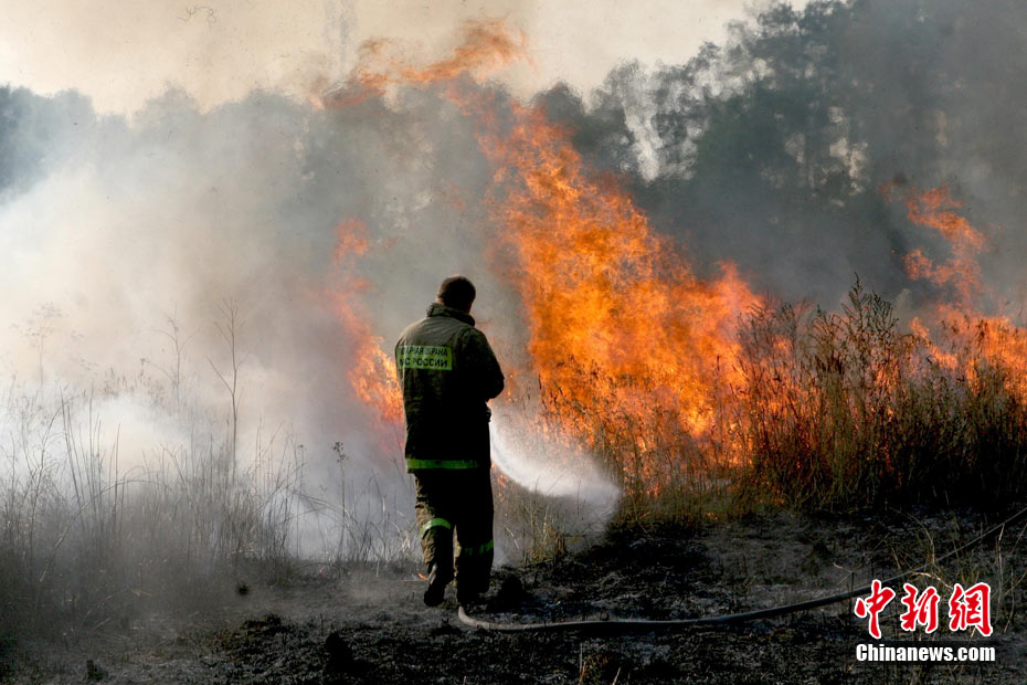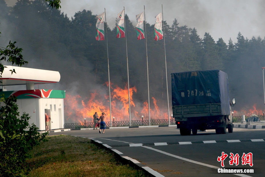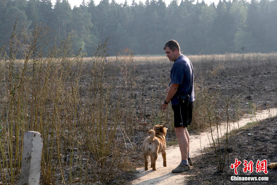 8月5日,在距離莫斯科市區(qū)僅15公里處的一家加油站附近突然燃起森林大火,情勢(shì)非常危急。當(dāng)?shù)孛癖娮园l(fā)與消防人員全力滅火。中新社發(fā) 田冰 攝