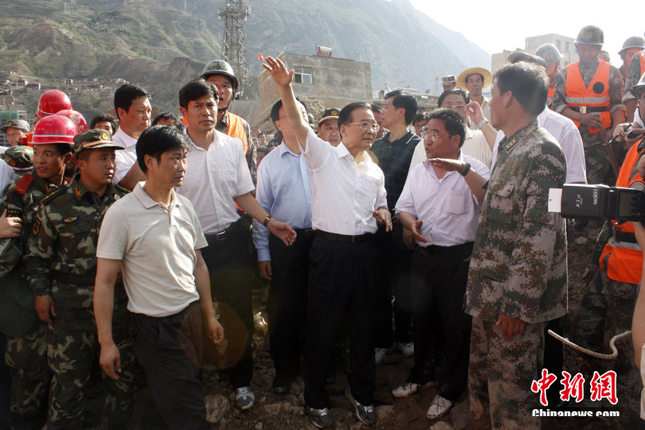 8月8日凌晨,溫家寶總理下午5點(diǎn)左右已抵達(dá)甘肅舟曲三眼村救災(zāi)現(xiàn)場。 中新社發(fā) 康元彬 攝 圖片來源:cnsphoto
