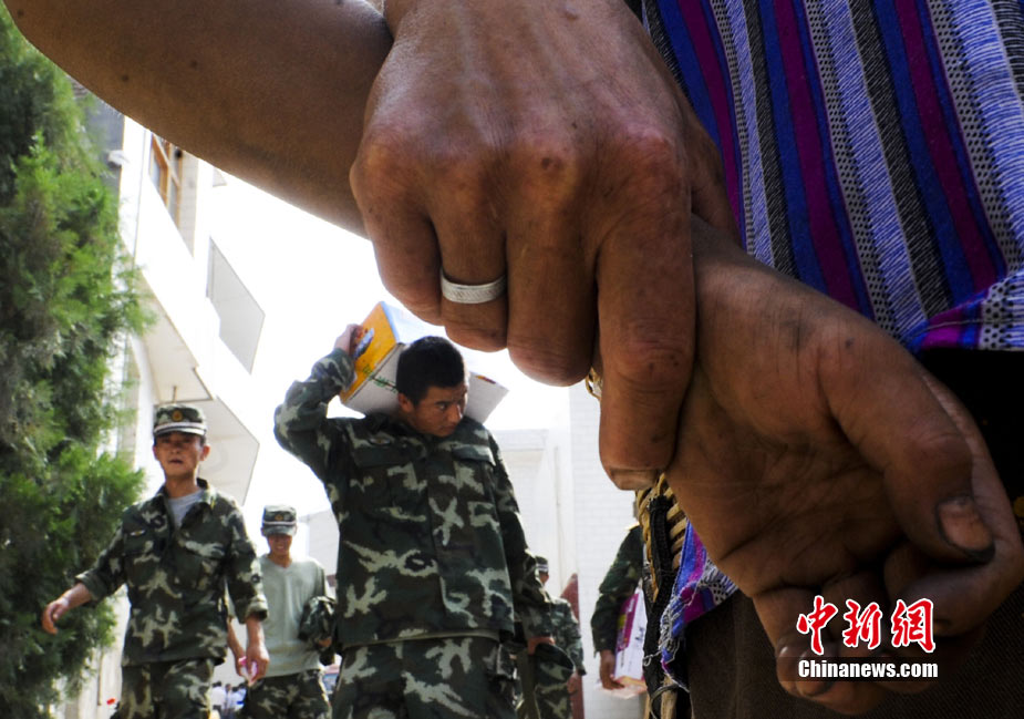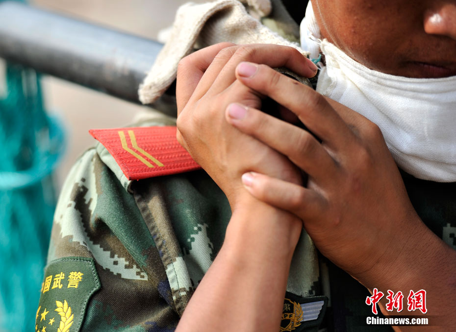 8月10日 舟曲救援進(jìn)入到第三天,解放軍武警官兵們在廢墟中尋找著一切希望。中新網(wǎng)記者 金碩 攝