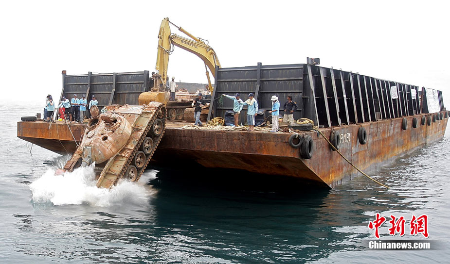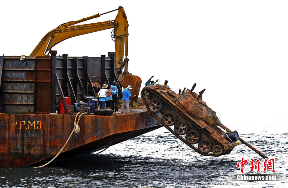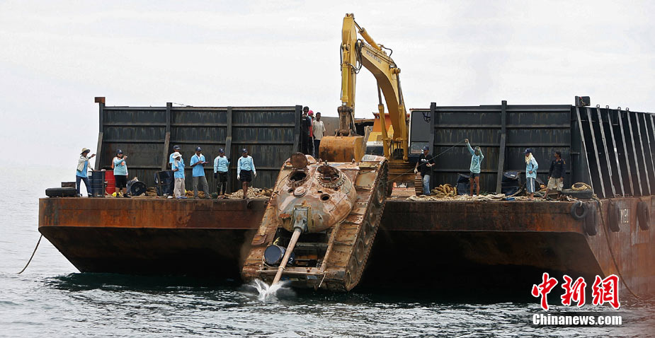 8月9日,泰國政府將25輛軍隊(duì)廢棄坦克連同一些卡車丟進(jìn)大海,目的是形成一些固定的水下建筑結(jié)構(gòu),為海洋生物提供庇護(hù)場(chǎng)所,刺激本地魚類種群的繁殖。