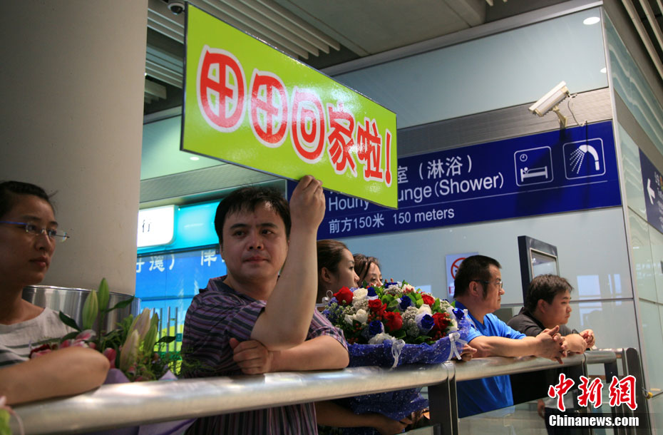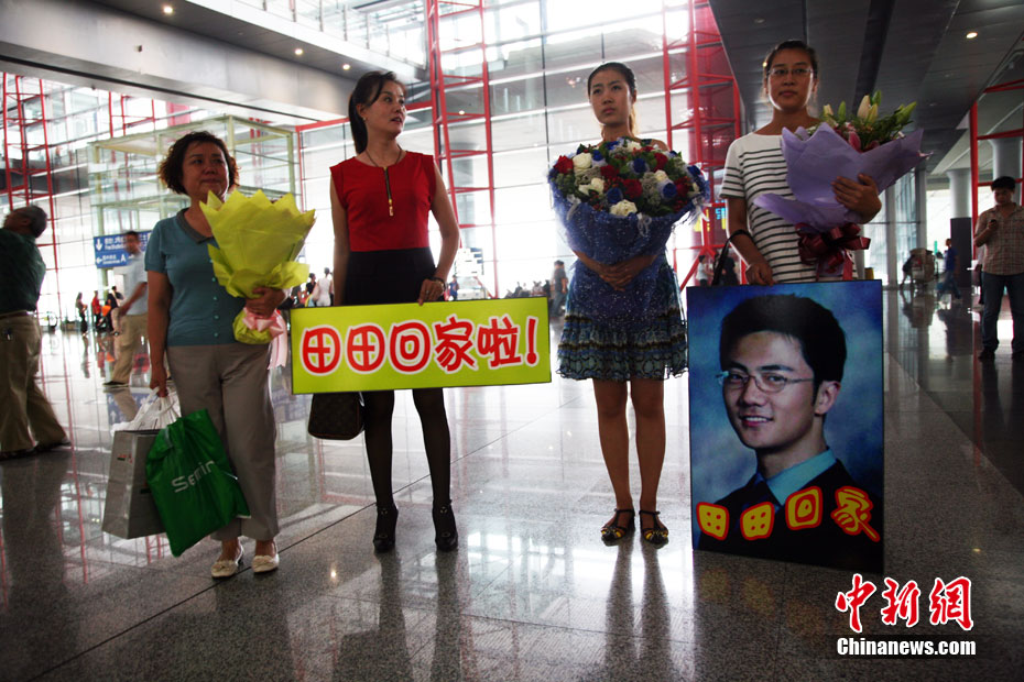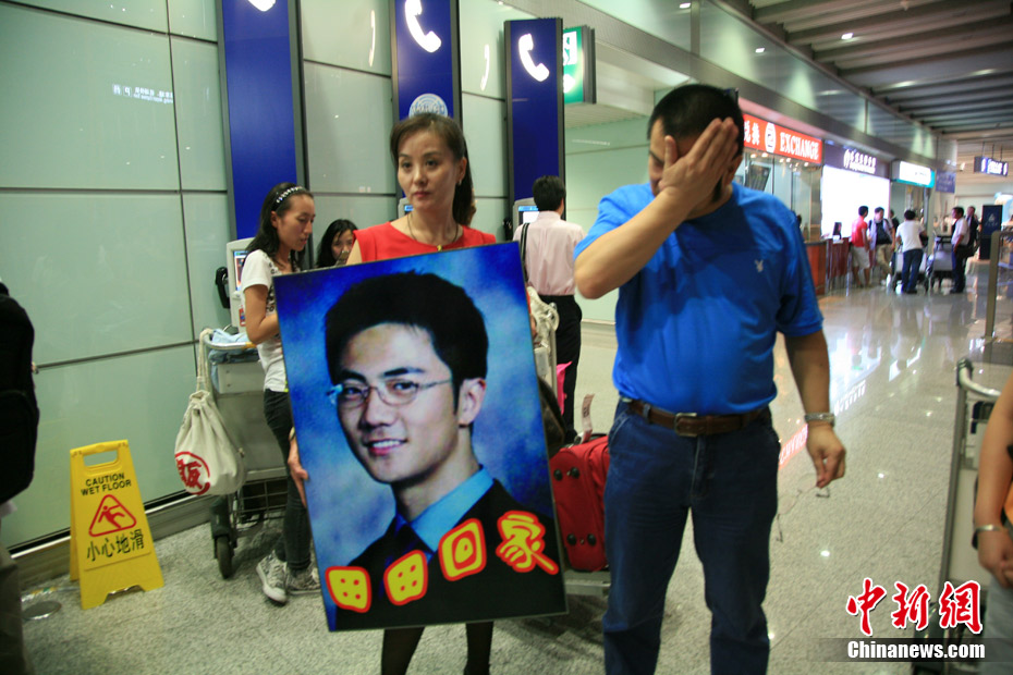 8月10日晚間,被控以“恐怖威脅”罪而被逮捕的中國留美博士生翟田田,自紐約肯尼迪國際機場抵達北京首都國際機場。在異國他鄉(xiāng)經(jīng)歷約4個月的牢獄之災后,翟田田終于憑藉“自動離境”權(quán)利離美歸國。今年4月份,在美國新澤西州攻讀博士學位的翟田田因與校方發(fā)生矛盾,以“恐怖威脅”罪名被逮捕,并遭校方退學并被美國移民局關(guān)入移民監(jiān)獄。圖為翟田田與8年未曾謀面的父親相擁而泣。中新網(wǎng)記者 張冬冬 攝