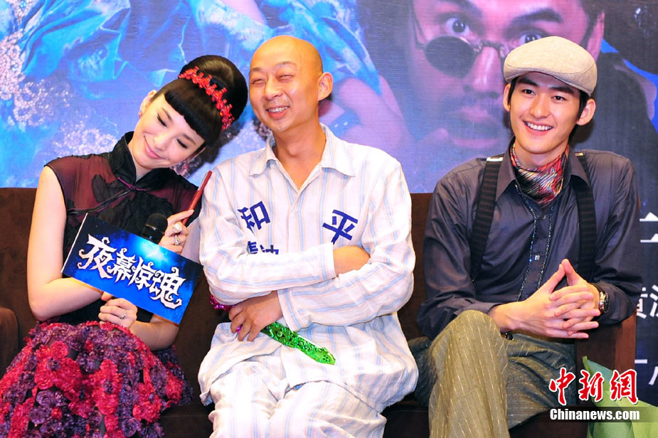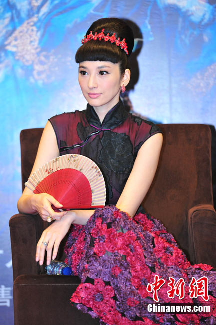 8月12日,由吳佩慈和張翰主演的驚悚喜劇《夜幕驚魂》在北京舉行關(guān)機(jī)發(fā)布會(huì)。影片導(dǎo)演丁小洋攜主演吳佩慈、張翰、連晉等主演均以“民國(guó)造型”出席。而發(fā)布會(huì)途中卻遭兩位自稱(chēng)“吳佩慈粉絲”的重癥精神病患者砸場(chǎng)鬧事,兩人在一陣大呼小叫后持“刀”沖向花容失色的吳佩慈,讓現(xiàn)場(chǎng)震驚。張翰等男演員則頓時(shí)跳起護(hù)住吳佩慈。眾人合力制服兩位精神病患者后,導(dǎo)演竟然宣布這是演戲,讓現(xiàn)場(chǎng)媒體哭笑不得。搞笑刺激的橋段讓人對(duì)這部將于明年初上映的影片倍感期待。圖為吳佩慈優(yōu)雅亮相。中新社發(fā) 李學(xué)仕 攝