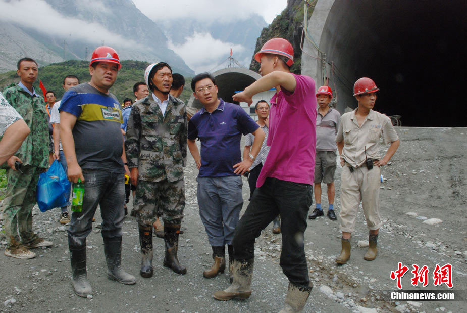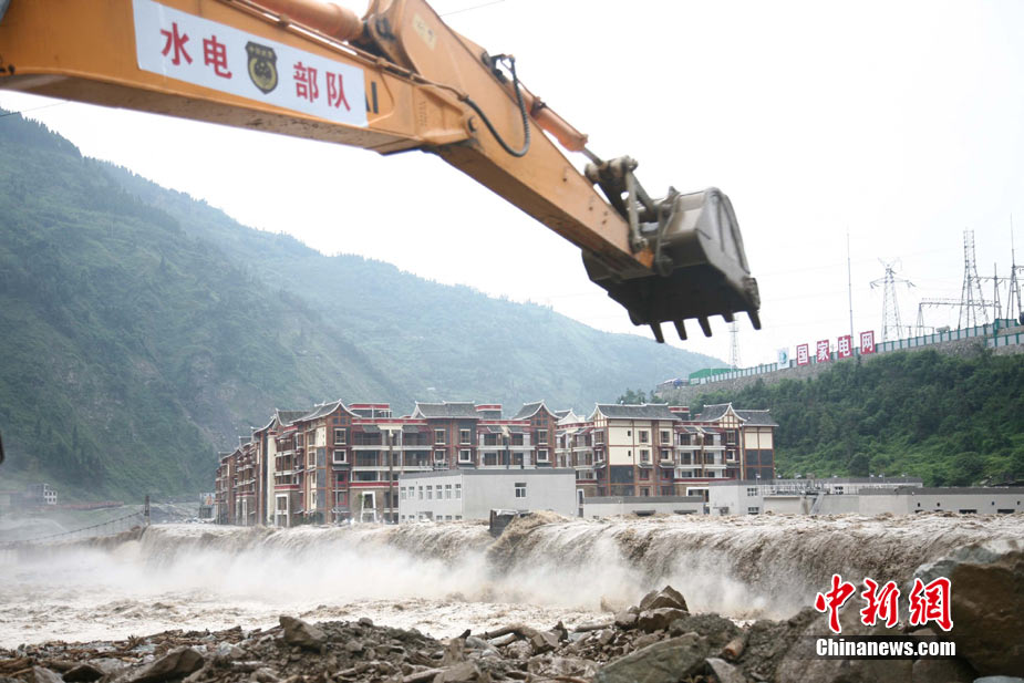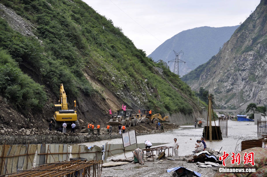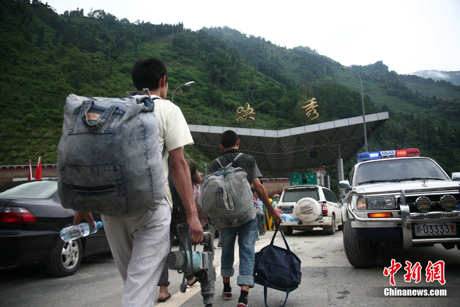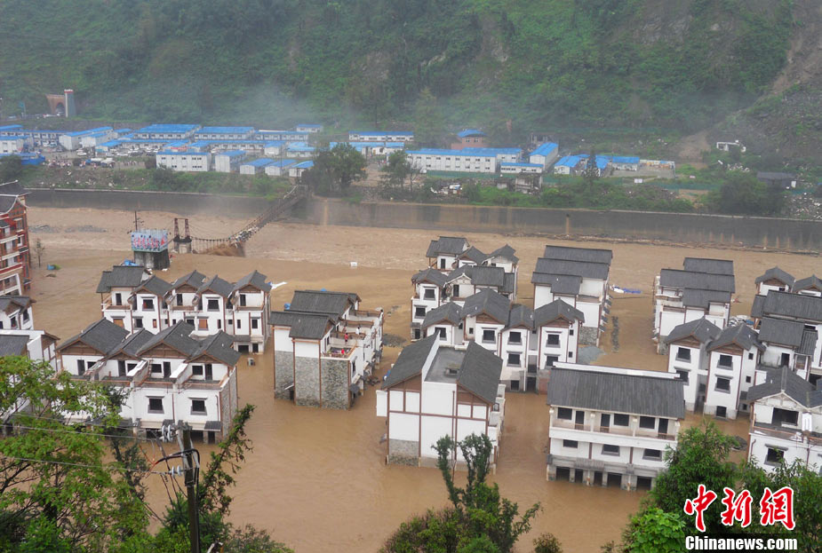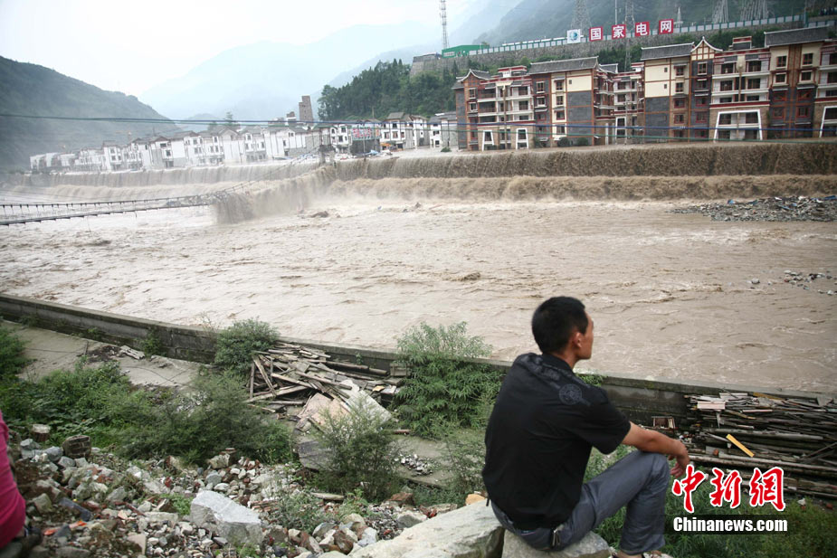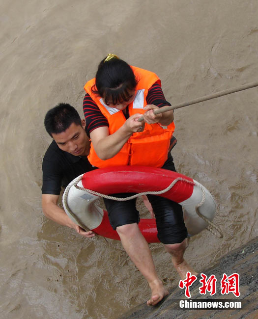 8月14日,四川德陽綿竹市清平、天池等山區(qū)遭遇暴雨泥石流襲擊,災害發(fā)生后,德陽消防出動車輛20臺次,消防官兵123人次,從各類災害事故中營救被困群眾26人,疏散群眾18人。圖為公安、消防、武警聯(lián)手營救被困村民。中新社發(fā) 沈消軒 攝