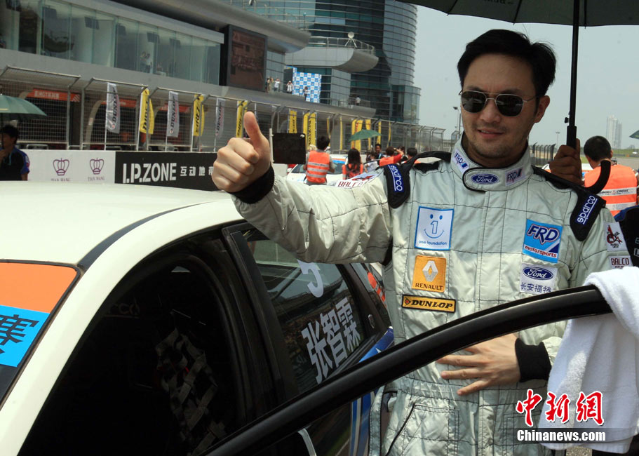8月16日,由李連杰攜手郭富城等12位明星,在上海國際賽車場參加超級賽車慈善明星賽。中新社發(fā) 潘索菲 攝