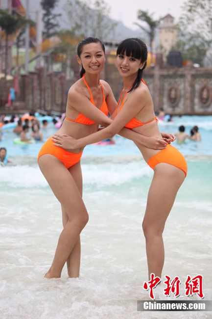 中新網(wǎng)重慶8月16日電 (連肖) 陽光、椰林、水浪、比基尼……16日,第三屆中國僑鄉(xiāng)麗人風(fēng)采大賽重慶賽區(qū)的24位美女走進加勒比海水上樂園,穿比基尼在水上爭奇斗艷。依然 攝