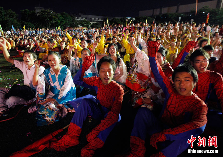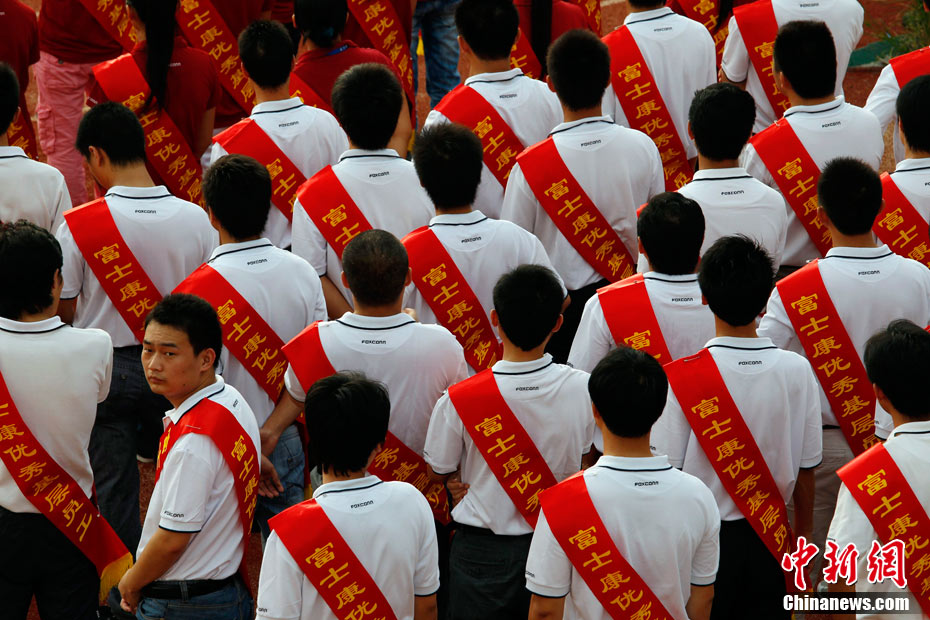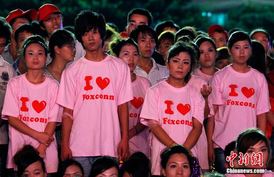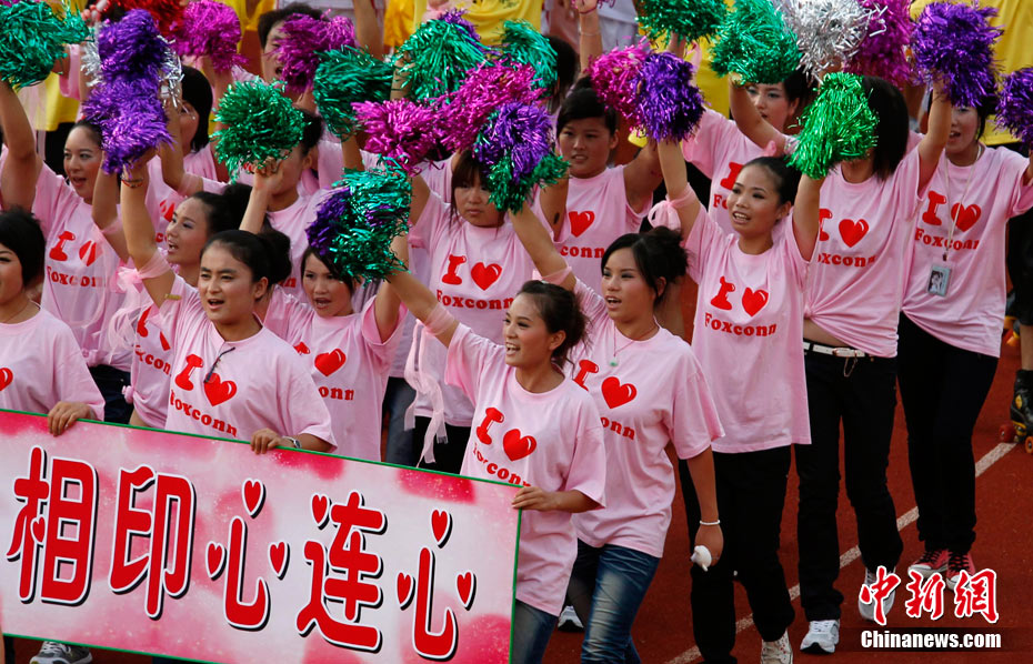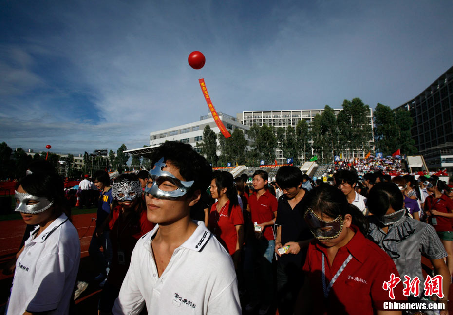 8月18日下午,深圳市富士康廠區(qū),舉行了一場(chǎng)由富士康員工自發(fā)倡議、富士康工會(huì)聯(lián)合會(huì)組織的規(guī)?涨暗娜f(wàn)人誓師活動(dòng),活動(dòng)的主題是“珍惜生命,關(guān)愛家人”,2萬(wàn)員工跟著一輛輛彩車歡聲笑語(yǔ),員工們說(shuō)這是他們的“狂歡節(jié)”。