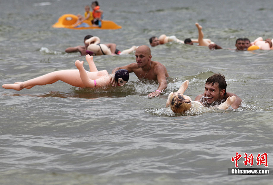 當(dāng)?shù)貢r(shí)間8月22日,一場別開聲面的搞笑游泳比賽在俄羅斯西伯利亞城市新西伯利亞舉行,數(shù)十名俄羅斯壯漢懷抱“充氣娃娃”躍入河中進(jìn)行游泳比賽。不過,從比賽實(shí)況來看,很顯然這些參賽者并沒有把充氣娃娃當(dāng)“伴侶”來對待,多半都當(dāng)成游泳圈,使得氣氛既搞笑卻又帶點(diǎn)詭異。