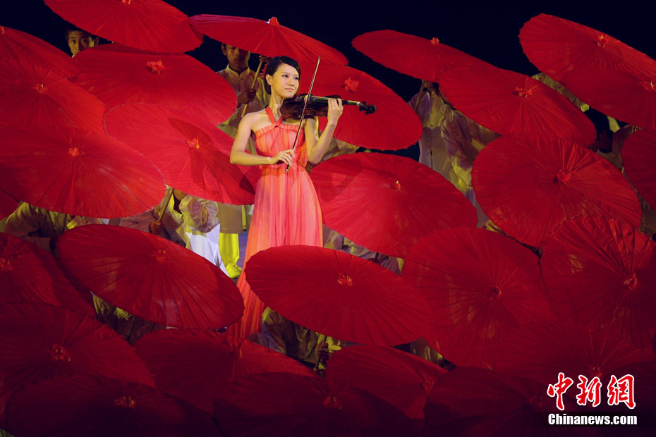 8月23日,北京武搏會開幕式彩排中,演員在由12.5萬根筷子粗細的腈綸線組成的“線陣”中表演。據(jù)了解,這是國內(nèi)首次使用“線陣”作為開幕式創(chuàng)意。 中新社發(fā) 蘇丹 攝