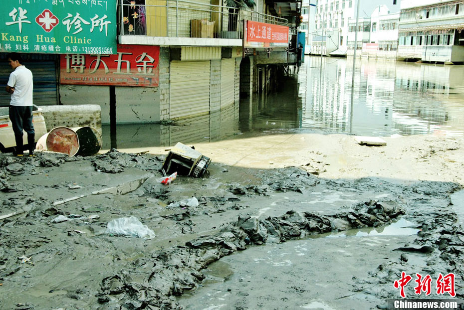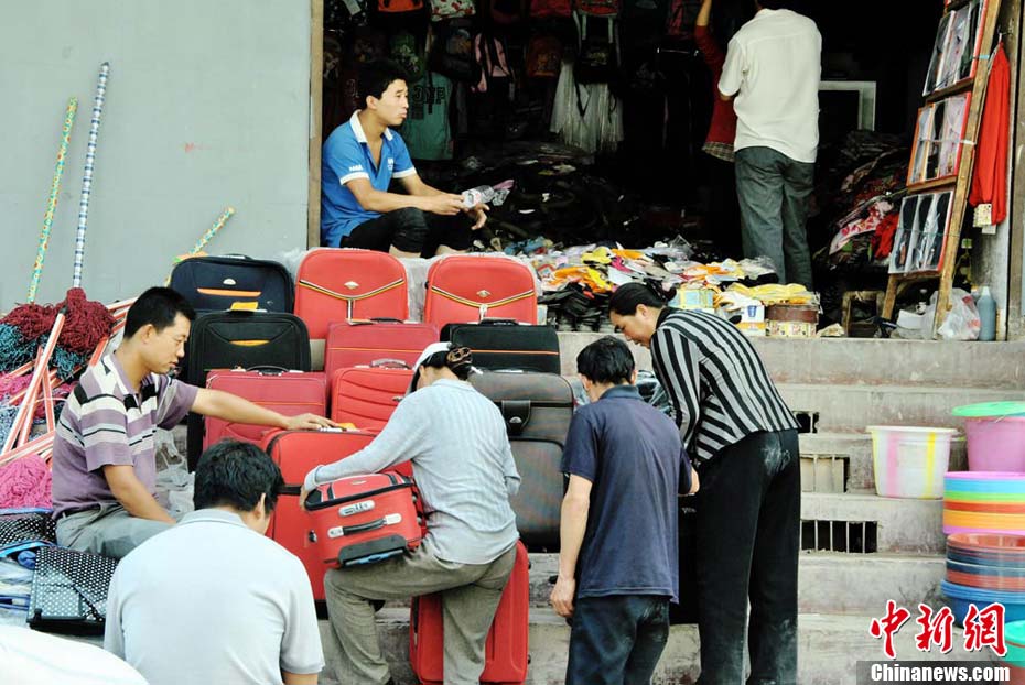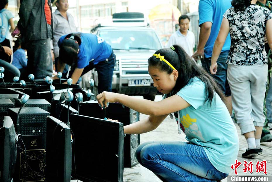 8月25日,舟曲縣城一家網(wǎng)吧的店員正在擦拭電腦,準(zhǔn)備開業(yè)。中新社記者 侯志紅 攝