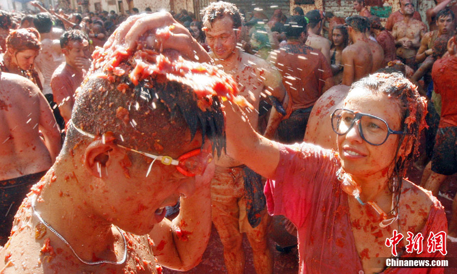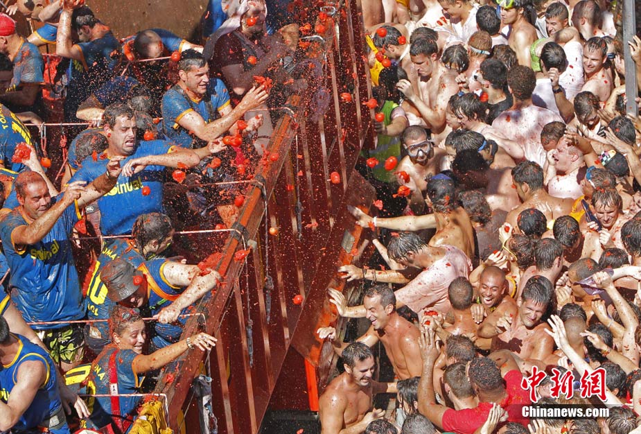 8月25日,西班牙東南部小鎮(zhèn)Bunol迎來傳統(tǒng)的西紅柿狂歡節(jié)。超過4.5萬人參加了此次活動,預計消耗了超過100噸西紅柿。這也是世界上最大規(guī)模的“番茄大戰(zhàn)”。