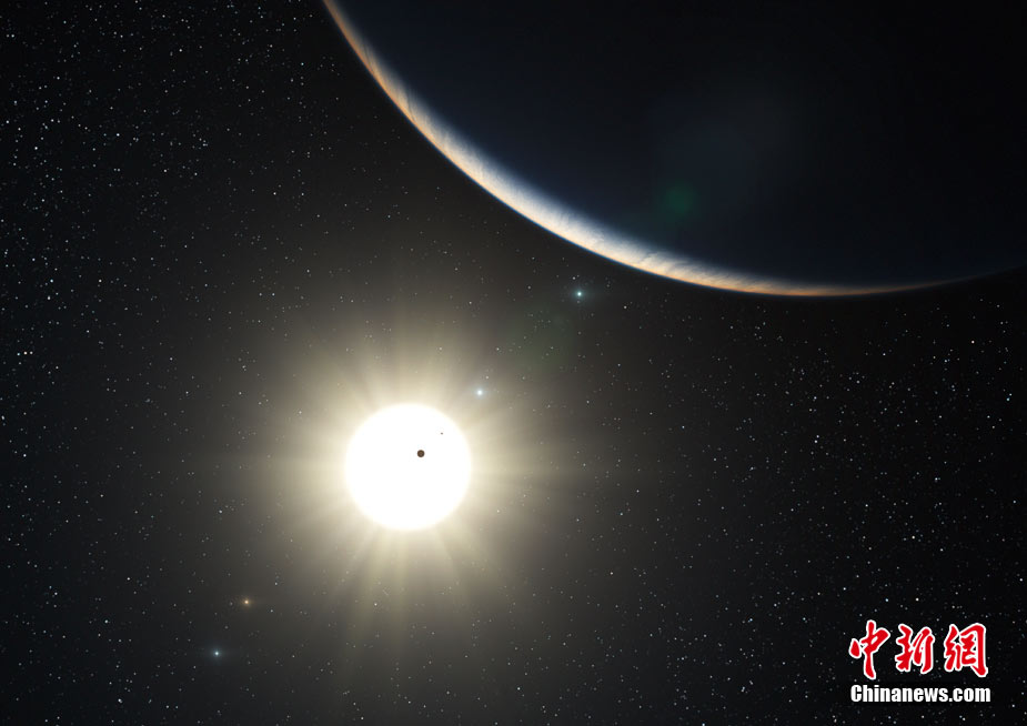 近日,科學(xué)家發(fā)現(xiàn)了一個(gè)距離地球127光年的與太陽系十分類似的巨大星系。美國宇航局太空望遠(yuǎn)鏡在太陽系外偵測到了5顆行星。這5顆行星與其母星的距離與太陽系內(nèi)行星與太陽的距離十分相似。天文學(xué)家正在尋找另外2顆行星存在的證據(jù)。圖為該星系的藝術(shù)想象圖。