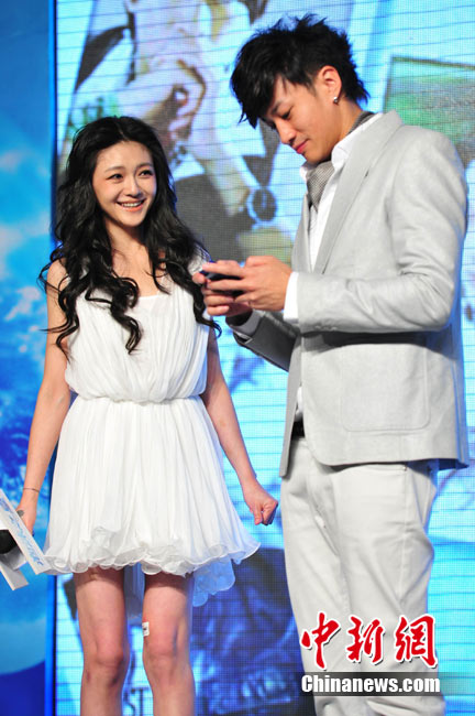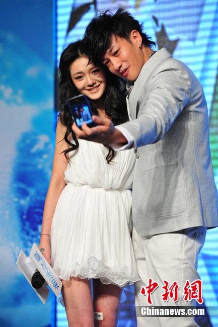 8月25日,偶像劇《泡沫之夏》在北京舉行了開播發(fā)布會(huì),主演大S與何潤(rùn)東出席。時(shí)尚女王大S浪漫卷發(fā)和夢(mèng)幻白裙造型似童話中的公主,與“夢(mèng)幻泡沫 浪漫之夏”的主題十分貼合。何潤(rùn)東也默契地以西裝出席,兩人十分登對(duì)。活動(dòng)中,這對(duì)不斷傳出緋聞的熒屏最佳搭檔不僅毫不避嫌地互相夸獎(jiǎng),何潤(rùn)東還當(dāng)眾與大S頻頻用手機(jī)自拍親密合影停不下來,還現(xiàn)場(chǎng)將自拍照上載至微博。中新社記者 李學(xué)仕 攝