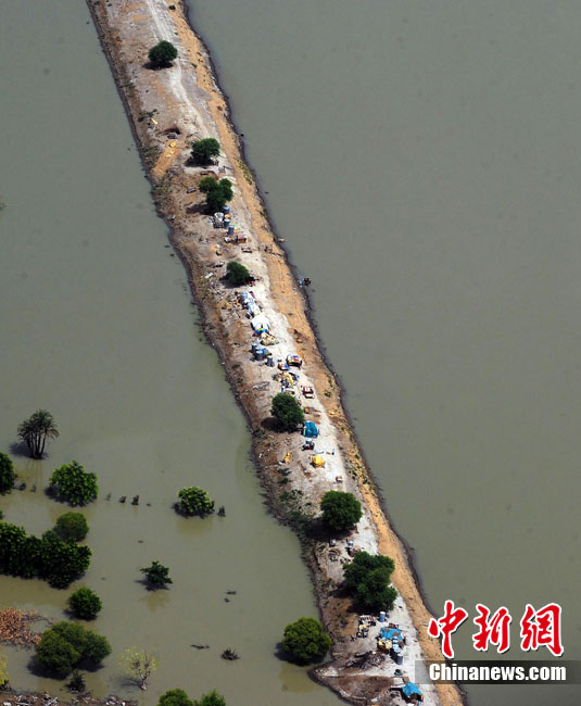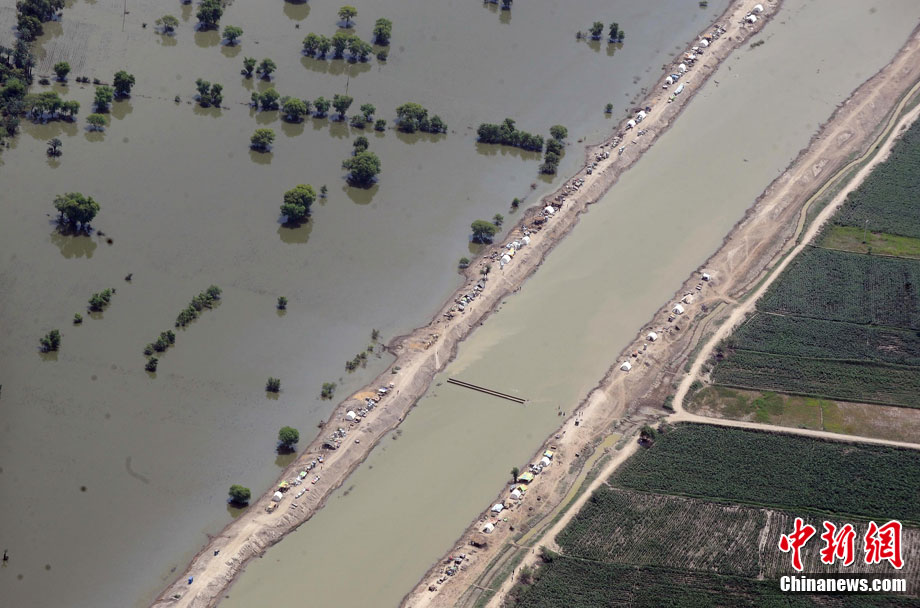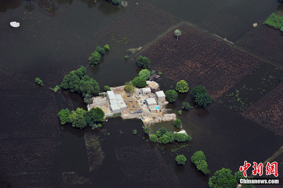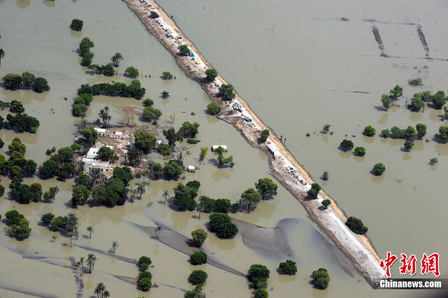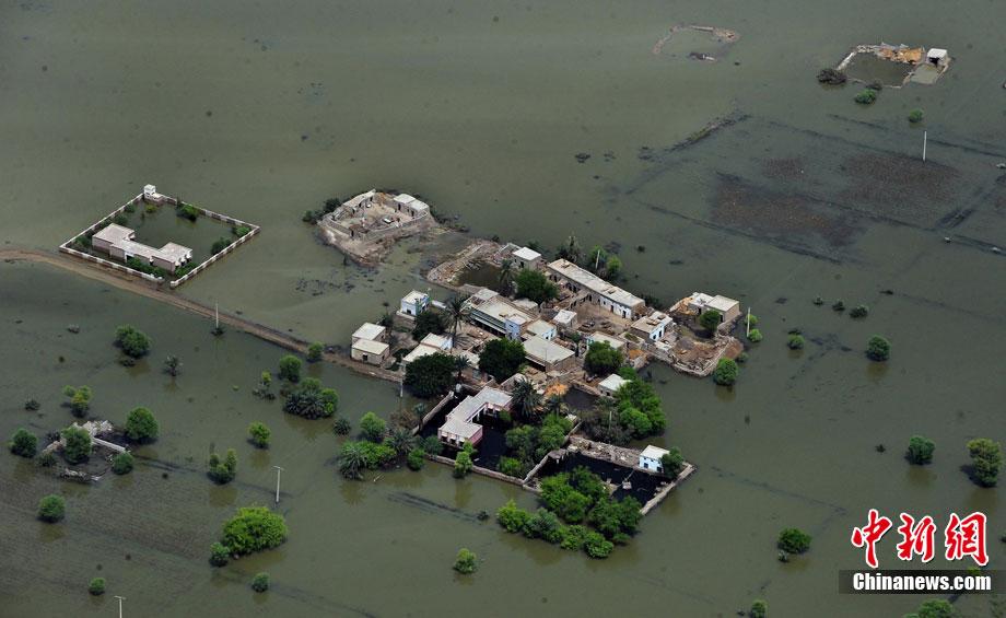 8月24日,聯(lián)合國人道事務(wù)協(xié)調(diào)廳表示,目前仍有80萬巴基斯坦災(zāi)民被洪水圍困。圖為航拍巴基斯坦被洪水淹沒的羅錢地區(qū)。